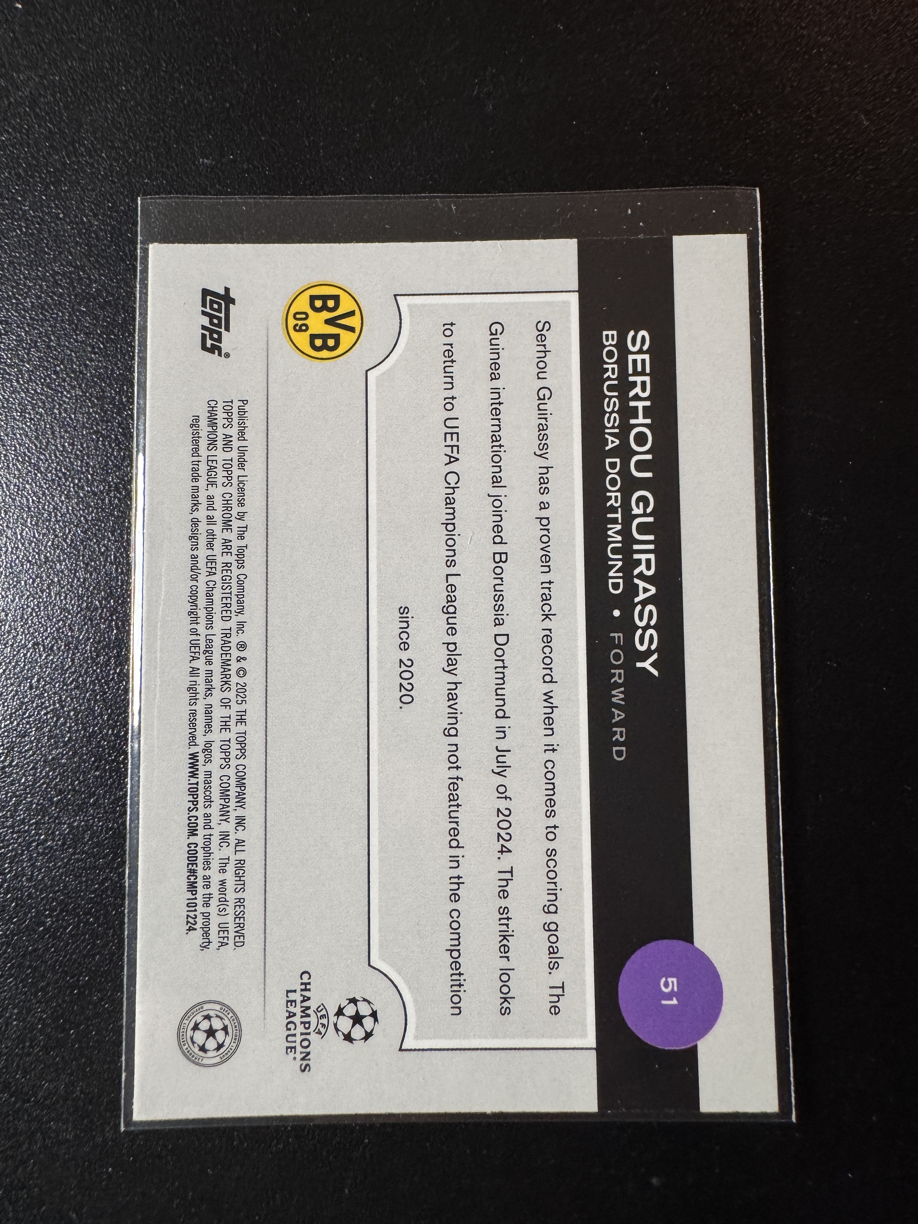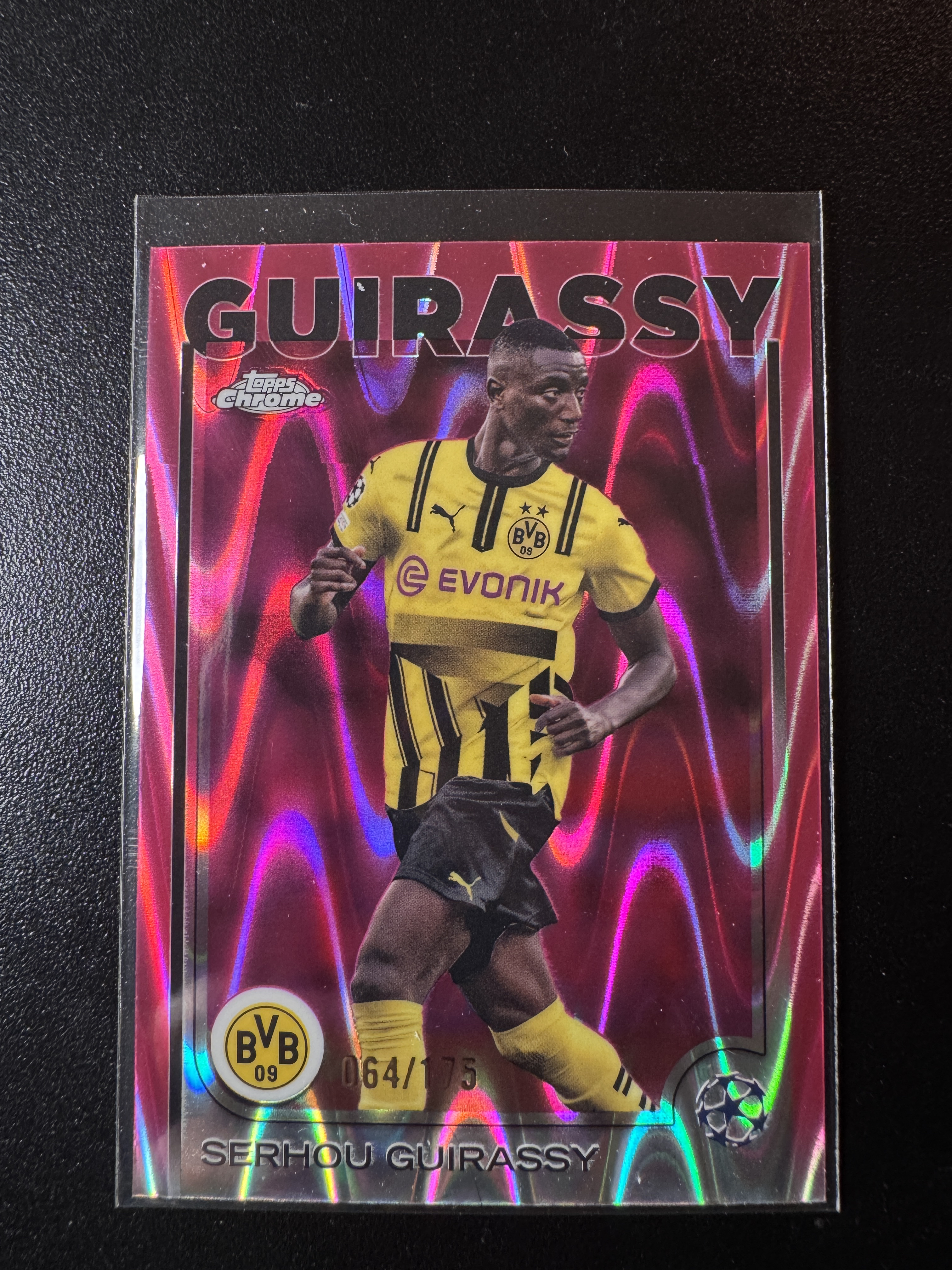 2025 Topps Chrome SERHOU GUIRASSY 欧冠 欧战 TC 吉拉西 多特蒙德 064/175编 霓虹粉熔岩折 卡品如图