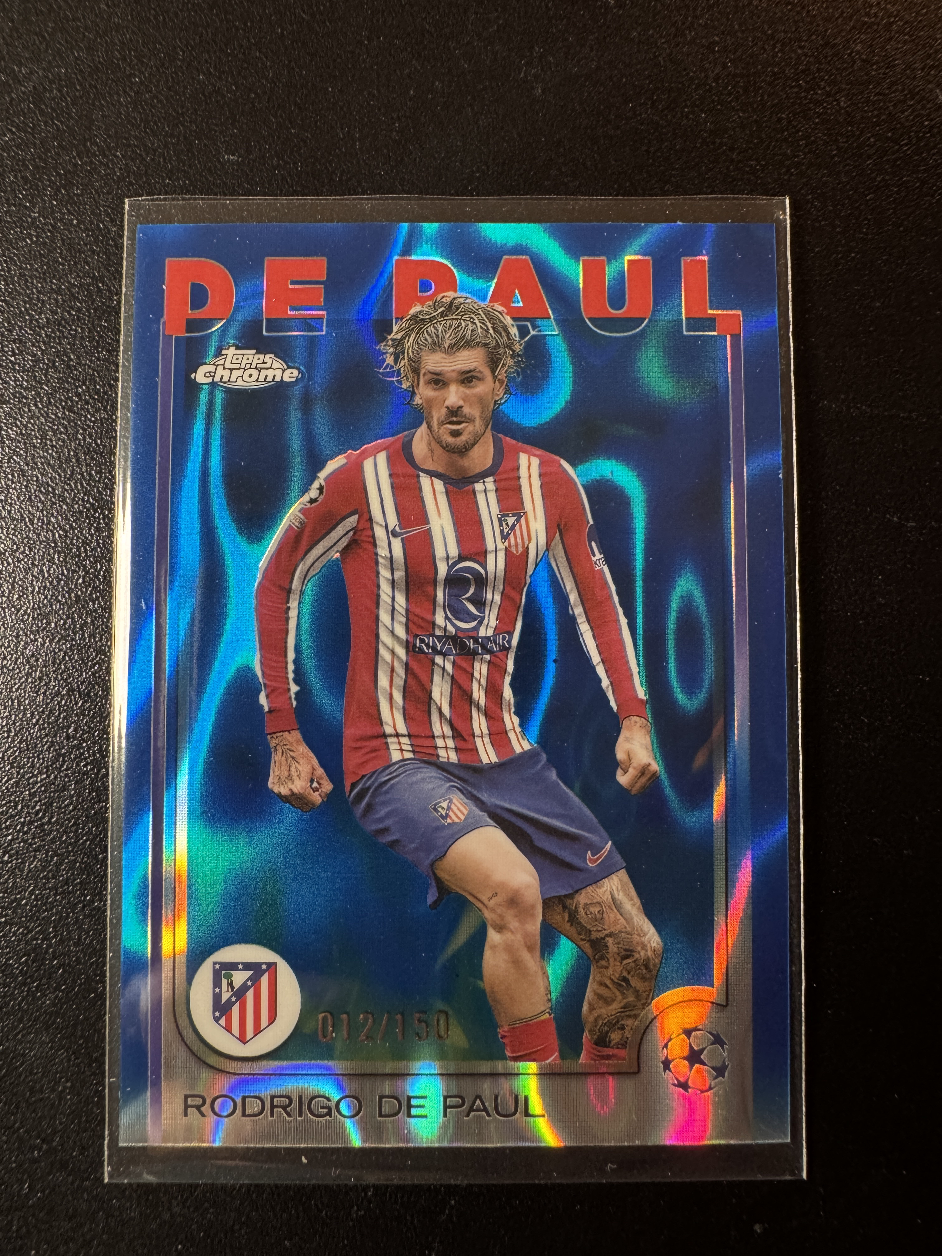 2025 Topps Chrome Rodrigo De Paul 欧冠TC系列 德保罗 012/150编 蓝熔岩折 阿根廷 马竞 马德里竞技 卡品如图