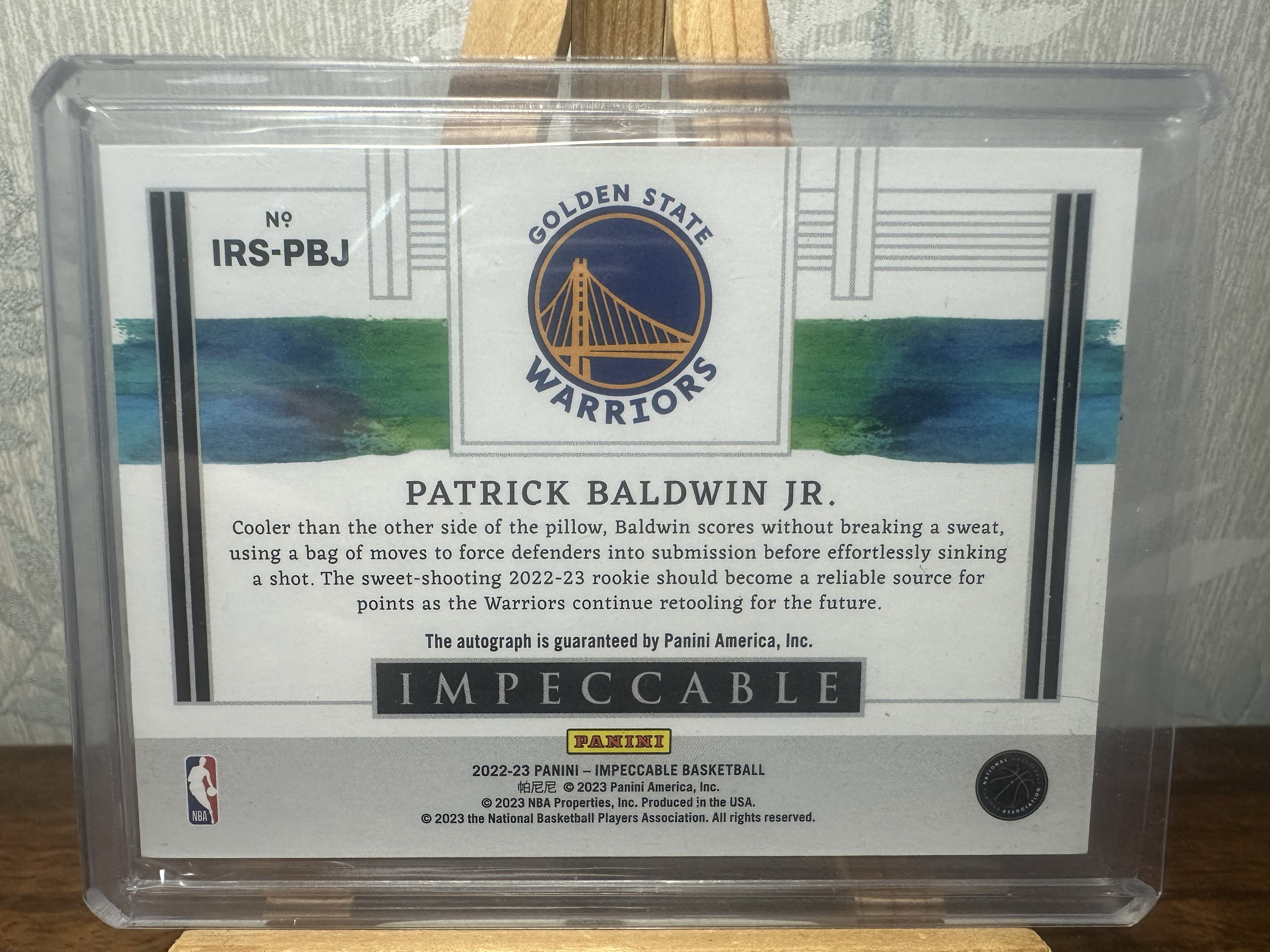 2022-23 Panini Impeccable Patrick Baldwin Jr. RC 小帕特里克 鲍德温 新秀 小真金 无懈可击 勇士 签字卡签 99编 库里 汤普森队友 墨迹完美未来可期