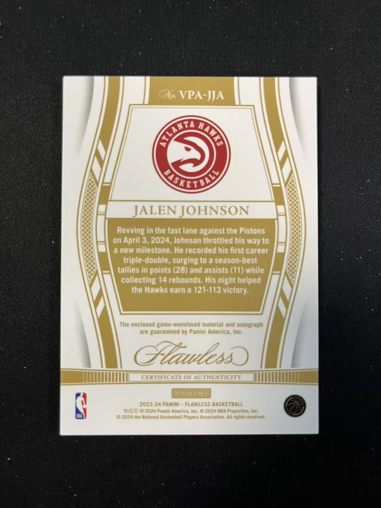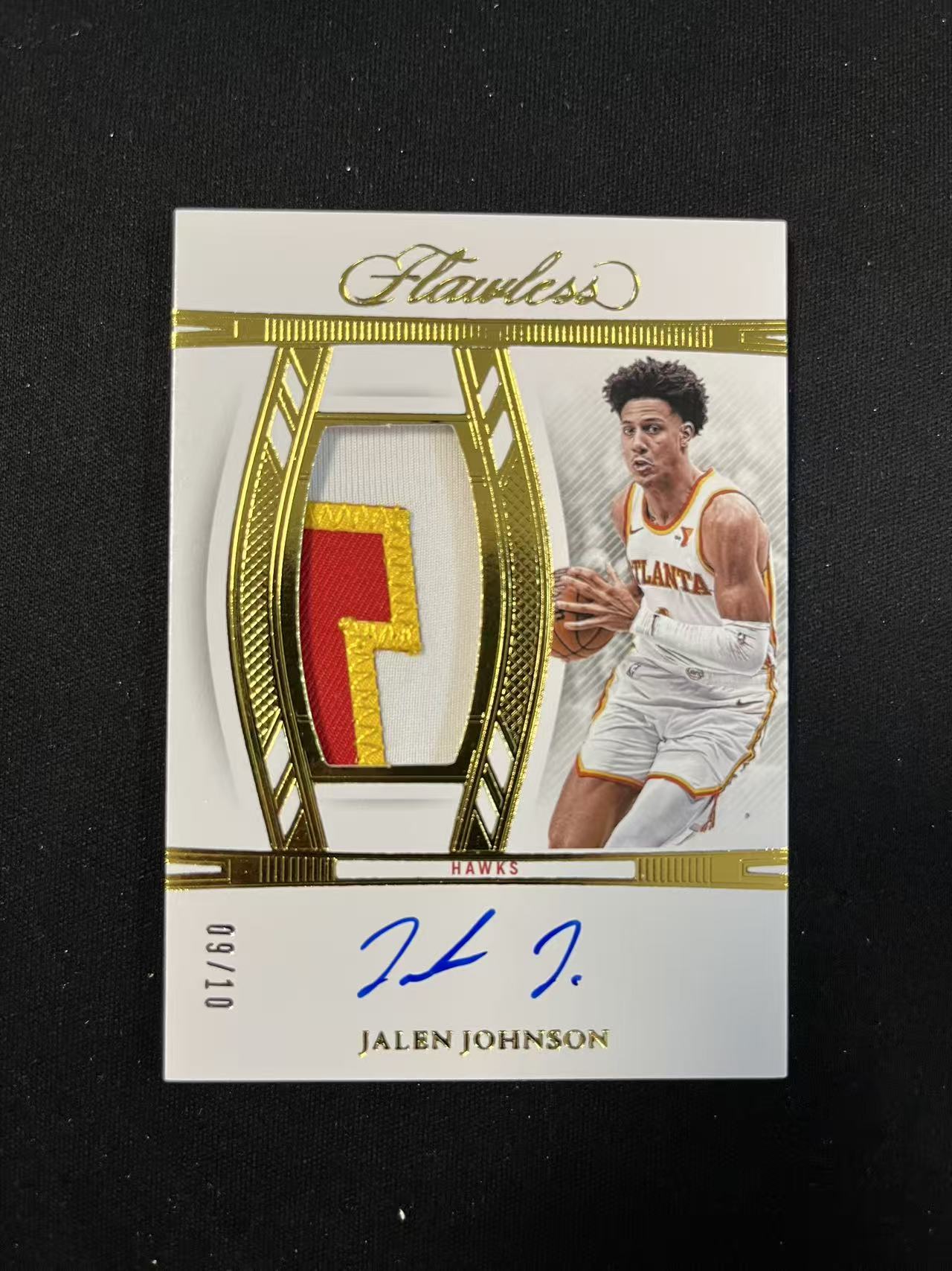 【扒卡拍卖】 2024-25 Panini Flawless Jalen Johnson 手提 老鹰 杰伦 约翰逊 签字 卡签 pa vpa 9/10编 金折 折射 反同背 三色暴力patch GU亲穿切割 首张 FT1023bk14