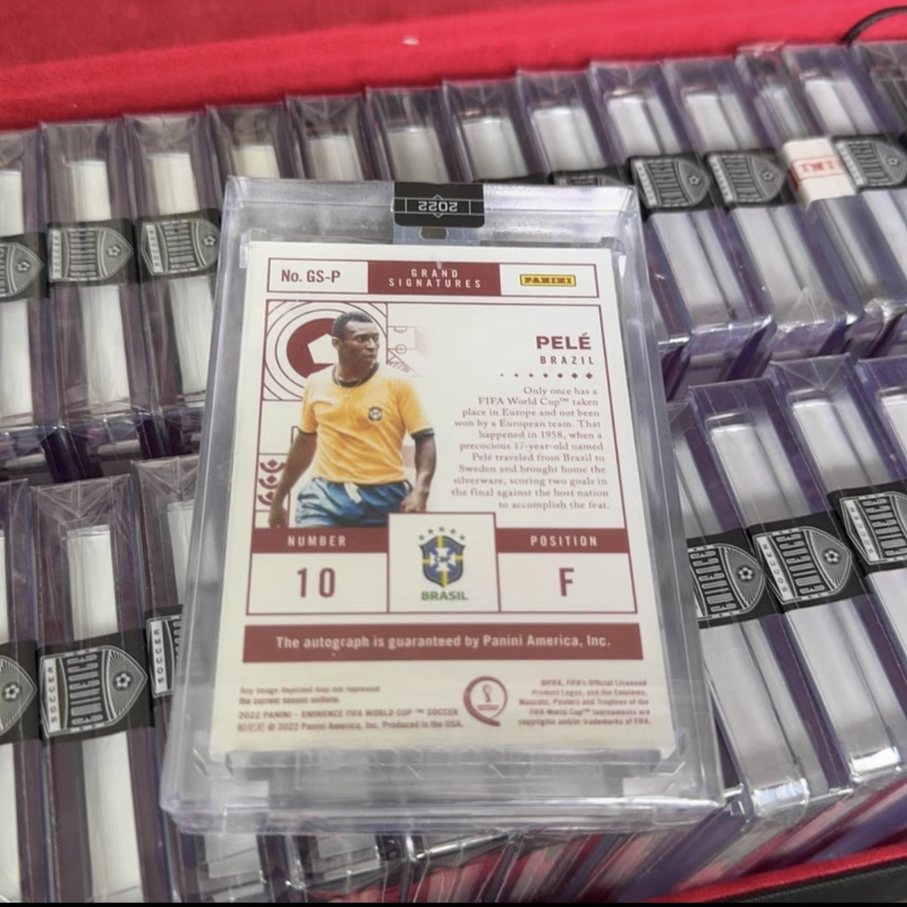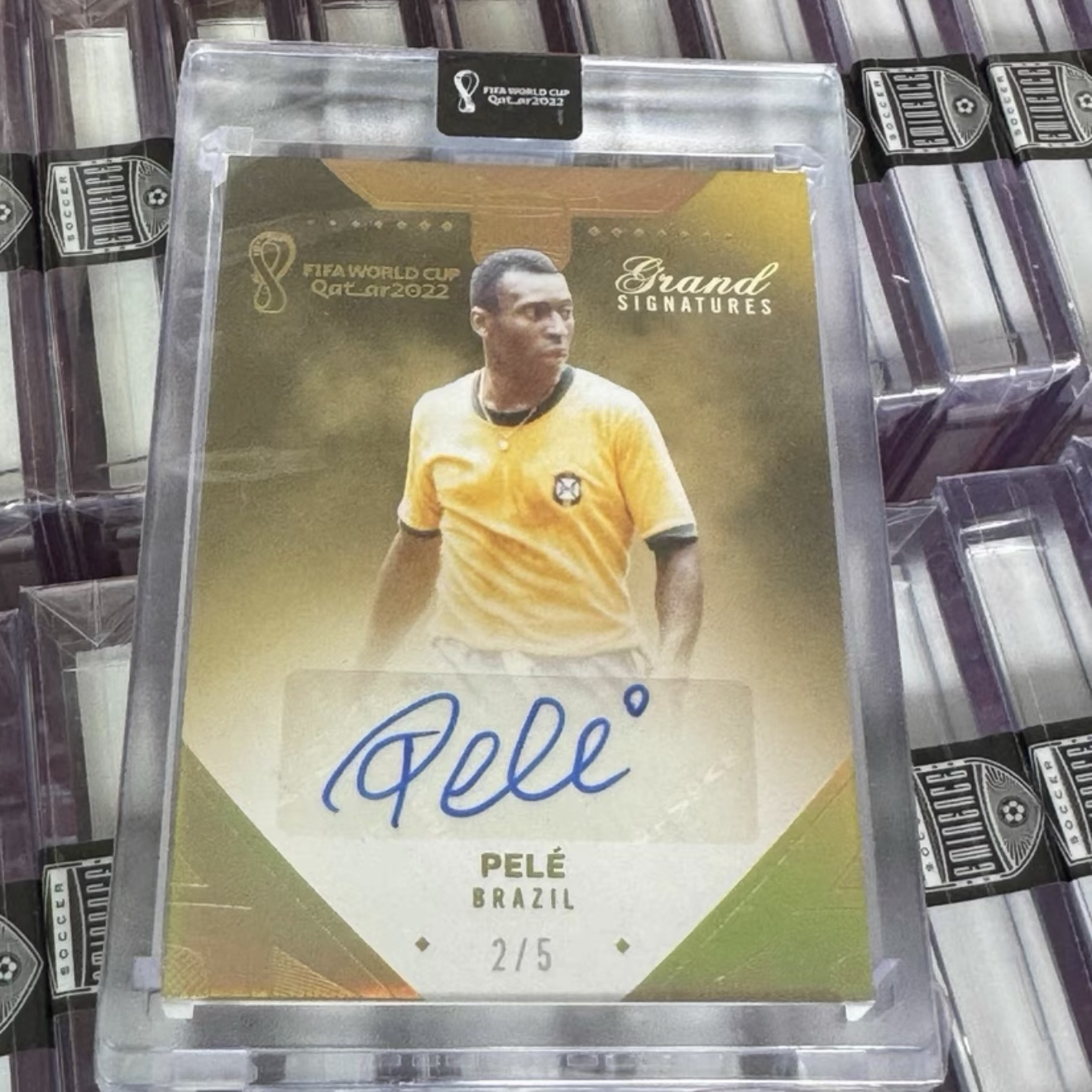 2022 Panini Eminence Pele 贝利 金卡签字 2/5 相乘同背 大真金白银 巴西 足球第一人 球王稳定升值马拉多纳梅西C罗内马尔姆 顶部标签划痕见详情描述