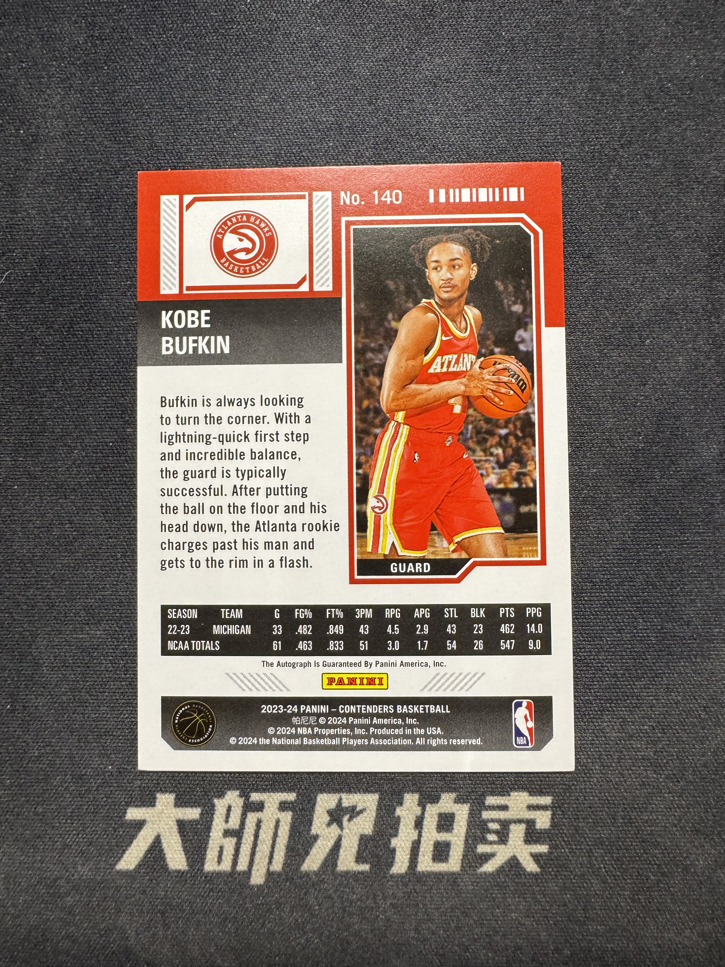 【大师兄拍卖】2023-24 Panini contenders KOBE BUFKIN RC 老鹰 科比 巴夫金 新秀 球票 签字 /99编 瑕疵看图 -Norman-