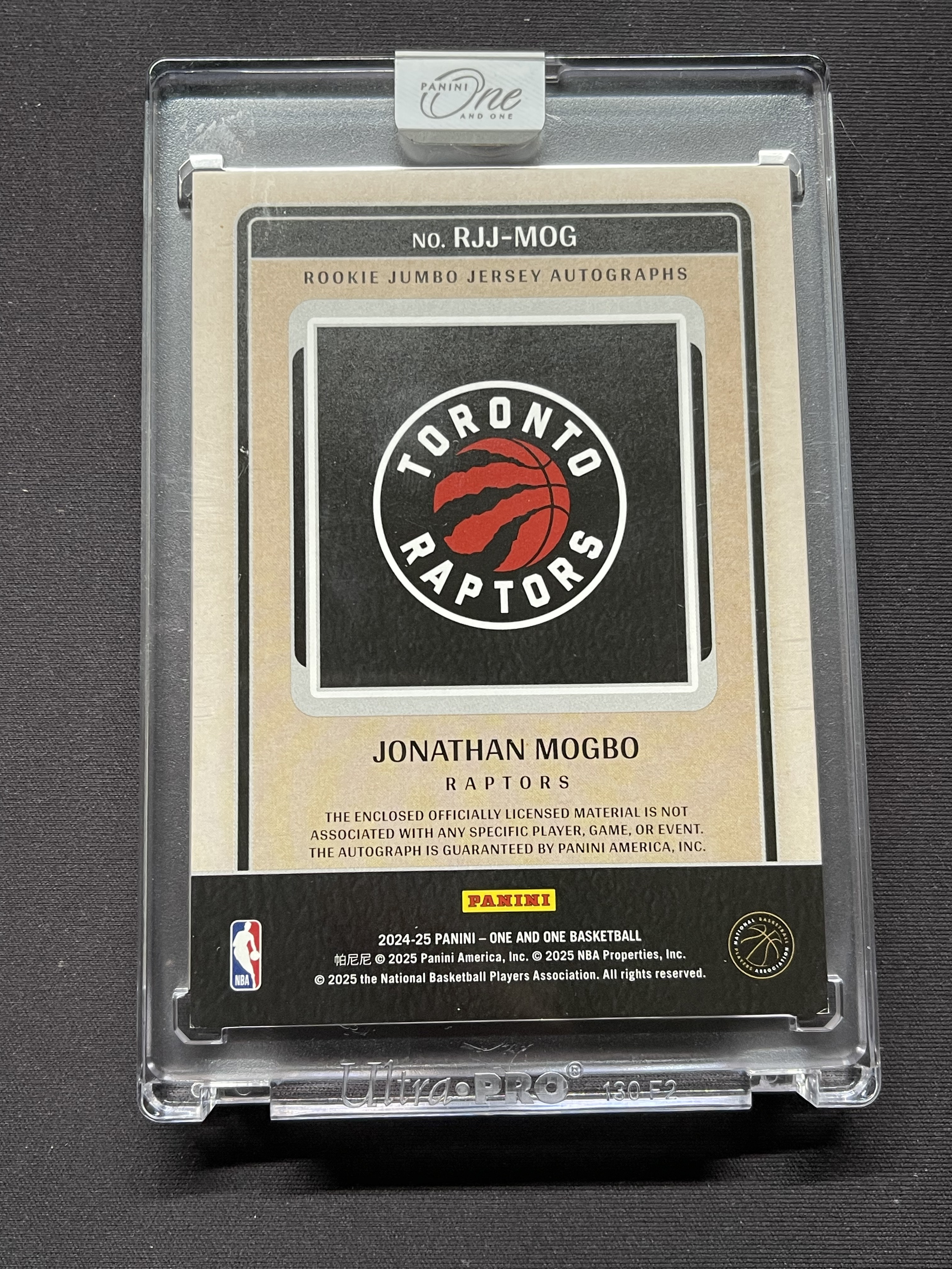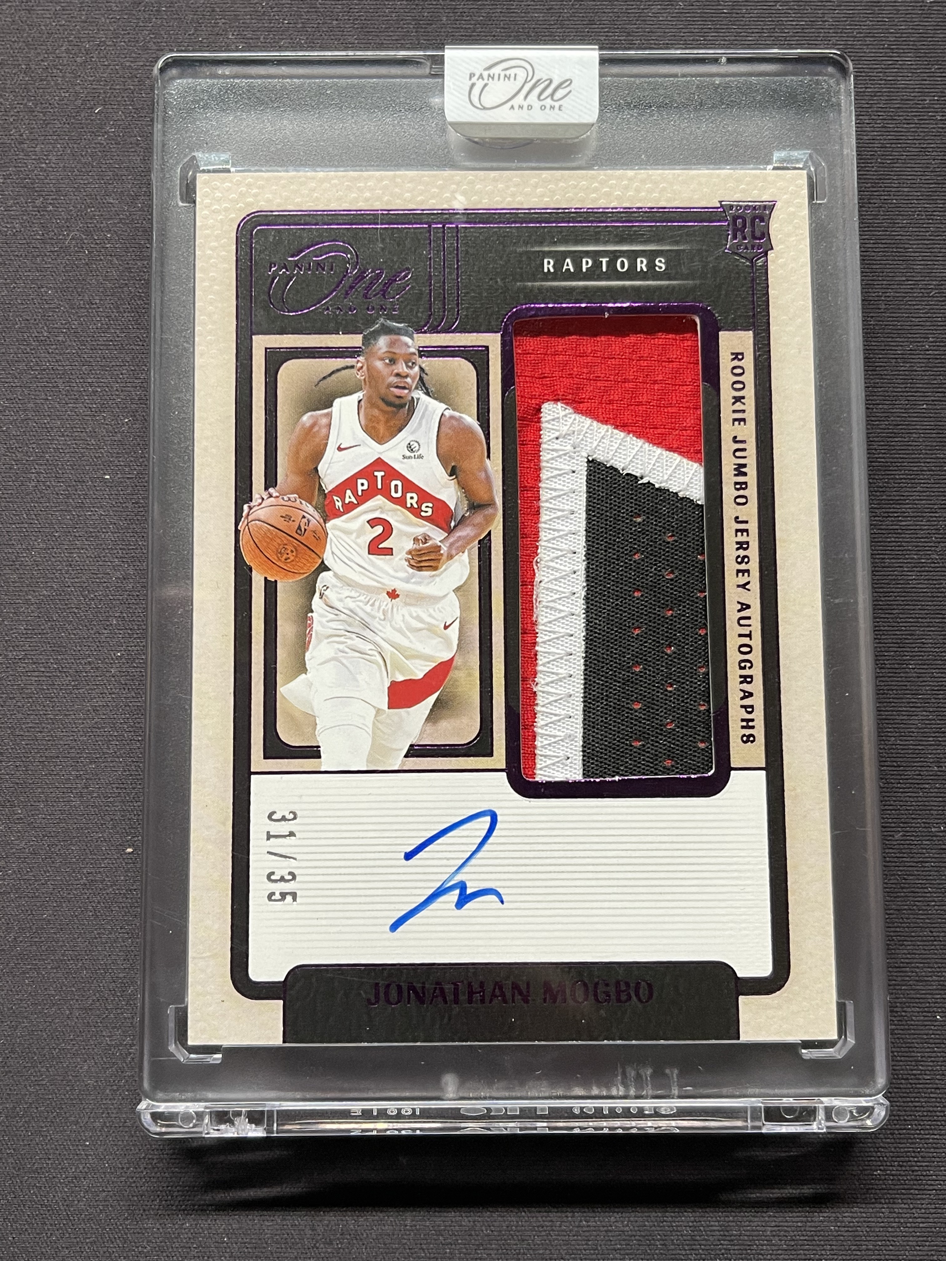 2024-25 Panini One and One Jonathan Mogbo RC 猛龙 乔纳森莫格博 新秀 Jumbo patch 签字卡签 RPA 31/35编 紫版「老夫子」南京板鸭