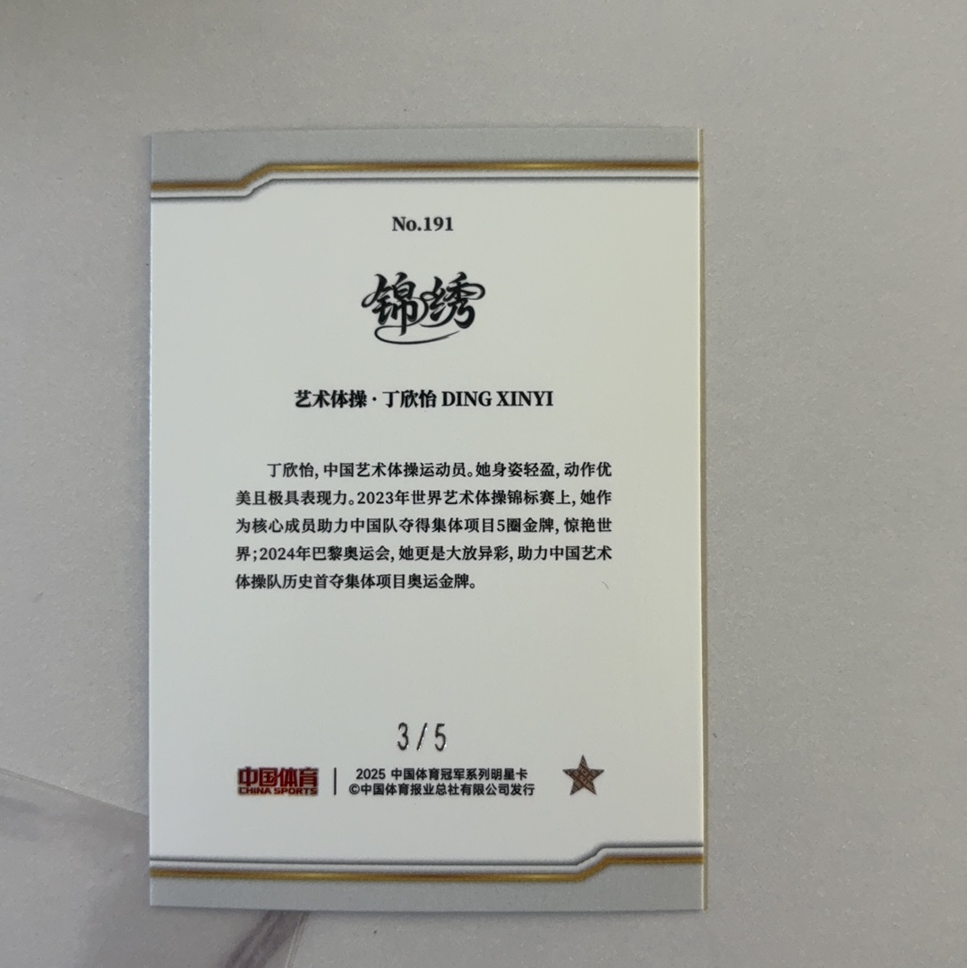 2025 奇卡 QICA 锦绣 丁欣怡 锦绣系列 中国女子艺术体操 奥运冠军 未来之星 丁欣怡 3/5编 超低编 翡翠绿折 收藏必备 卡品如图 暴风熊代拍 克利