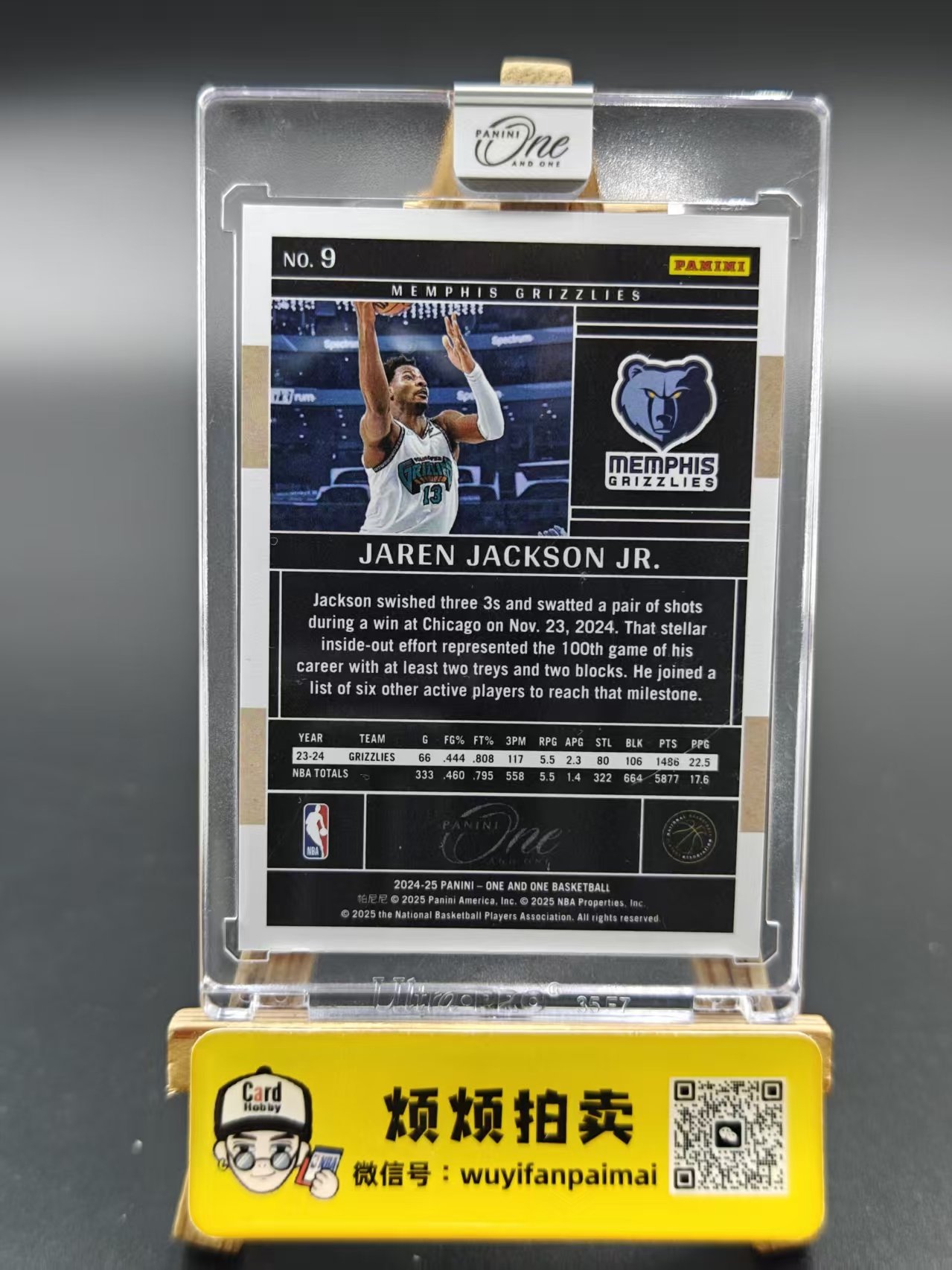 2.参拍:卡品墨迹如图所示(厚卡异形卡等都有正常白边白角,部分系列会有特殊瑕疵),请认真看图后再谨慎出价。不接受任何艺术家买卡,如拍到卡后有任何艺术家行为(包括但不限于在通行卡品里挑瑕疵索要赔偿或退卡等)一律拉黑投诉处理。所卖卡未经描述均为通行品,可能会有细微瑕疵;打包标小卡可能会有不同程度的瑕疵,不保障卡品;评级卡壳和原封砖的磨损不包含在卡品范围内;多张上拍卡品通行的同款卡片随机发货。竞拍前可以私聊要细节图,成交后再以有瑕疵、勿拍等理由退卡的一律拒绝,介意者请勿参拍!参拍即视为已读同意!