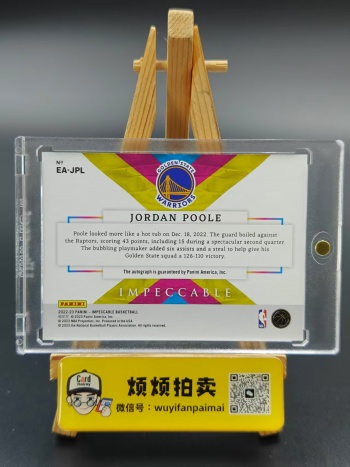 2.参拍:卡品墨迹如图所示(厚卡异形卡等都有正常白边白角,部分系列会有特殊瑕疵),请认真看图后再谨慎出价。不接受任何艺术家买卡,如拍到卡后有任何艺术家行为(包括但不限于在通行卡品里挑瑕疵索要赔偿或退卡等)一律拉黑投诉处理。所卖卡未经描述均为通行品,可能会有细微瑕疵;打包标小卡可能会有不同程度的瑕疵,不保障卡品;评级卡壳和原封砖的磨损不包含在卡品范围内;多张上拍卡品通行的同款卡片随机发货。竞拍前可以私聊要细节图,成交后再以有瑕疵、勿拍等理由退卡的一律拒绝,介意者请勿参拍!参拍即视为已读同意!