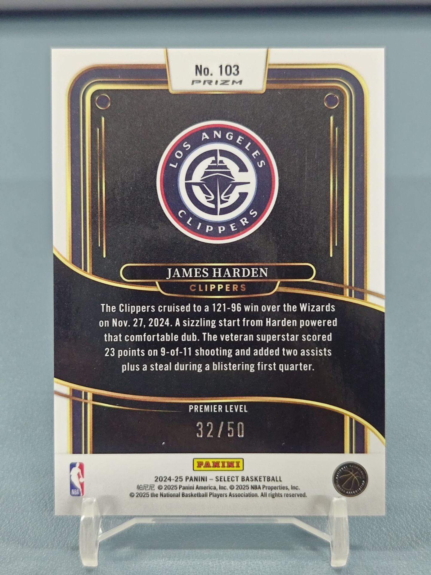 【浩行拍卖 截标预付82%】2024-25 panini select James harden 快船 詹姆斯 哈登 大胡子绿波纹 折射 二级 32/50编 专收必备 瑕疵看图「鲍翅」1026S02單