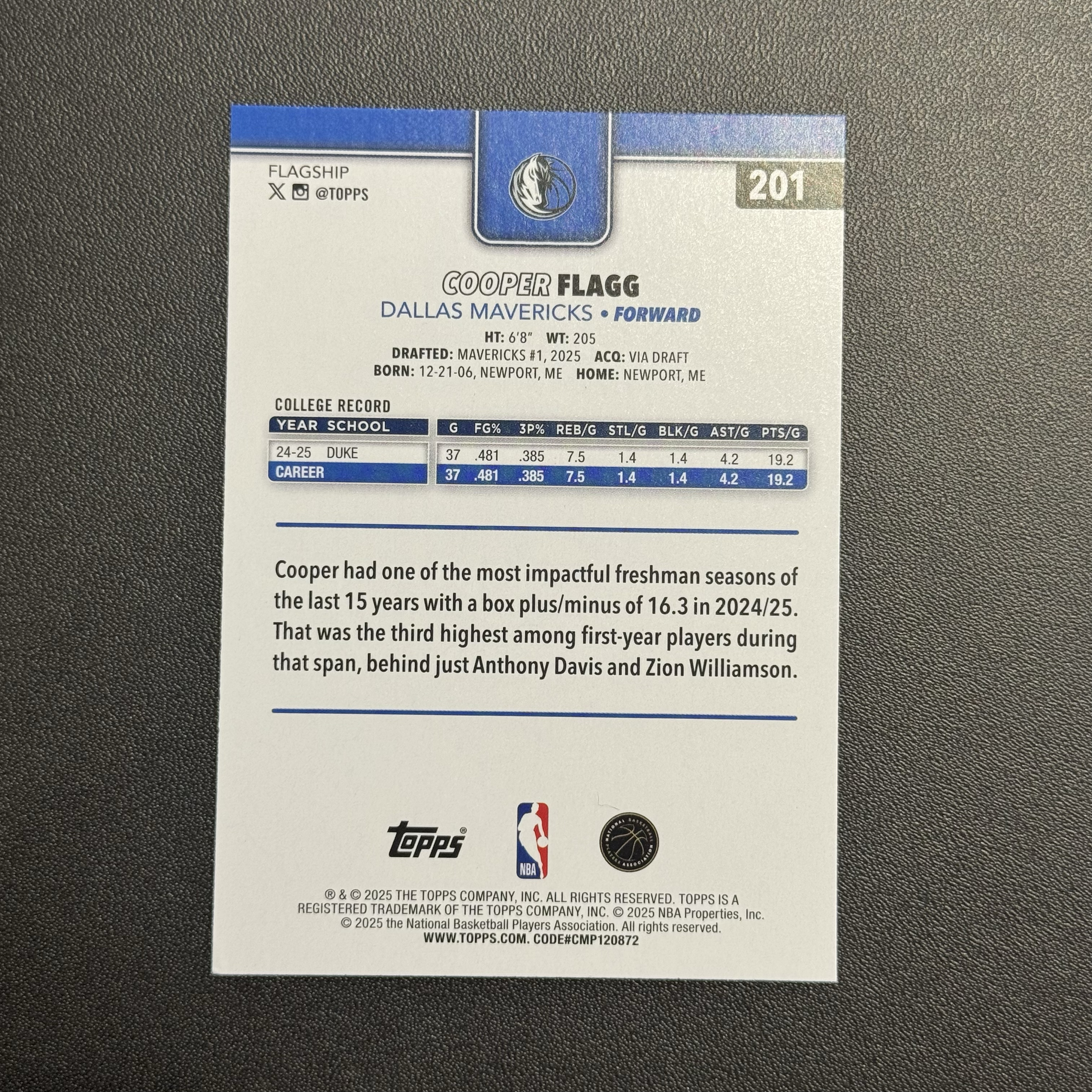 2025-26 Topps flagship Cooper Flagg RC 【猴猴旺卡】25赛季 独行侠 库珀 弗拉格 topps元年首发产品 收藏必备 未来新星 卡品如图 接代拍【于哥】