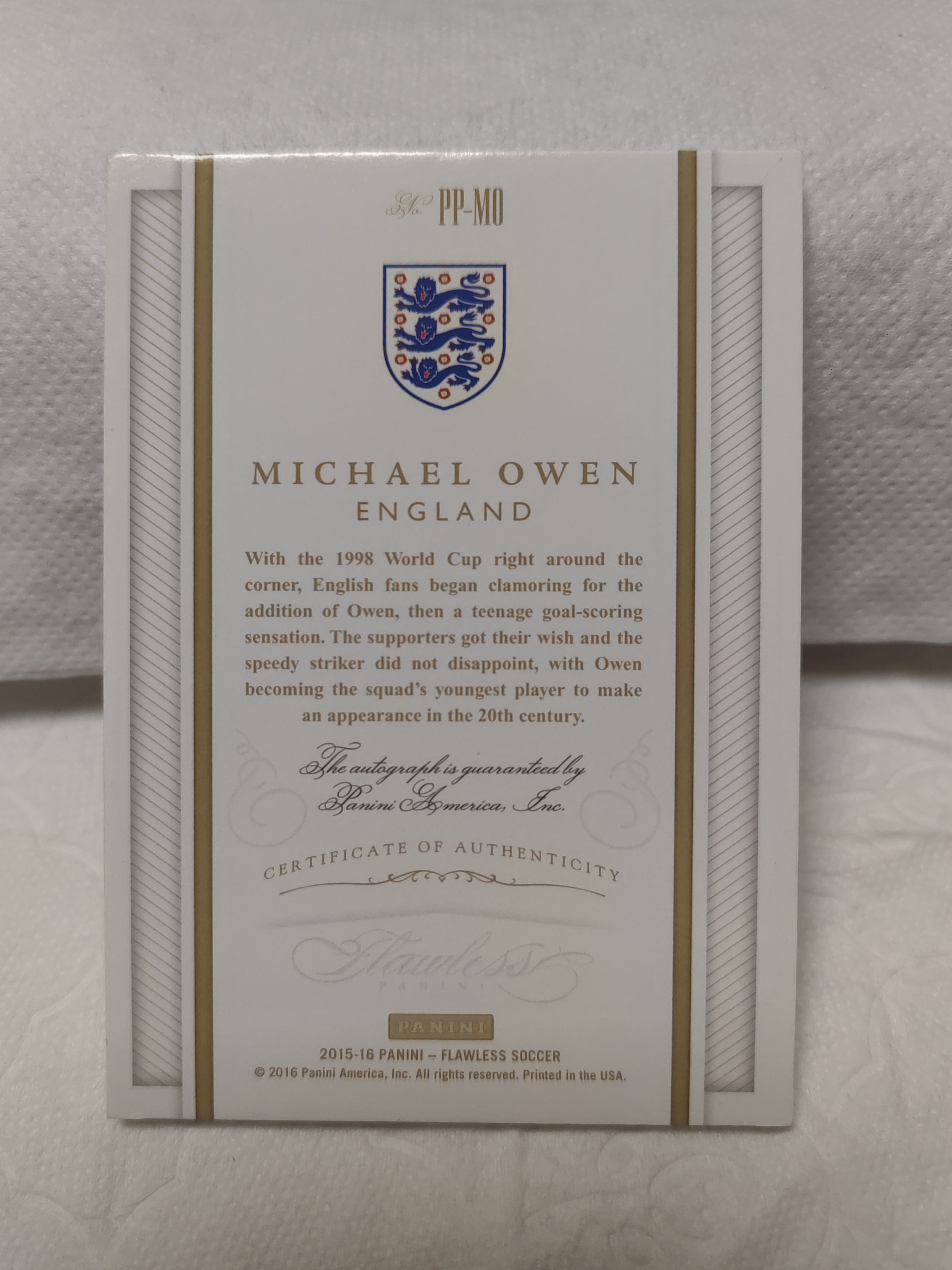 2015-16 Panini Flawless Michael Owen 欧文 手提 25编 卡签 完美 签字 风之子 金童 元年 唯一手提 英格兰 曼联 皇家马德里