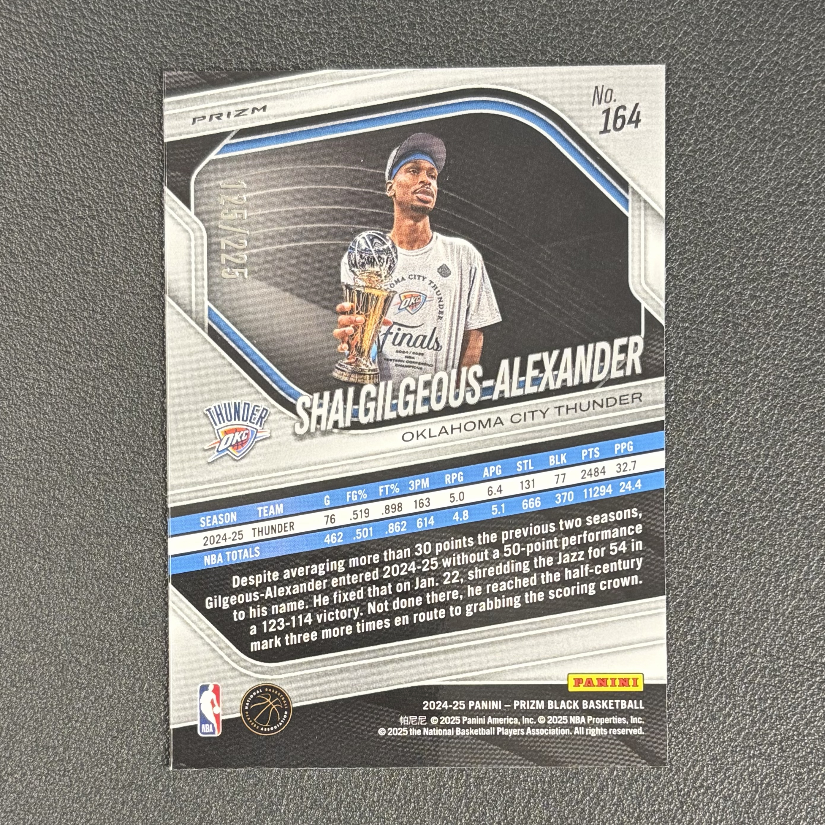 2024-25 Panini prizm black Shai Gilgeous-Alexander PZ 亚历山大 SGA 球皮折 225编 捧杯 FMVP 125/225