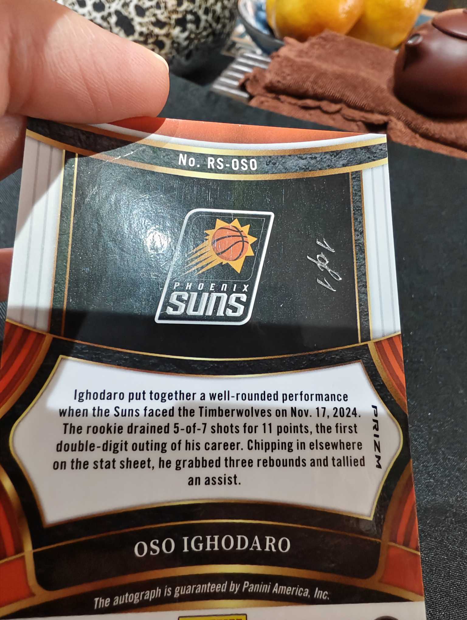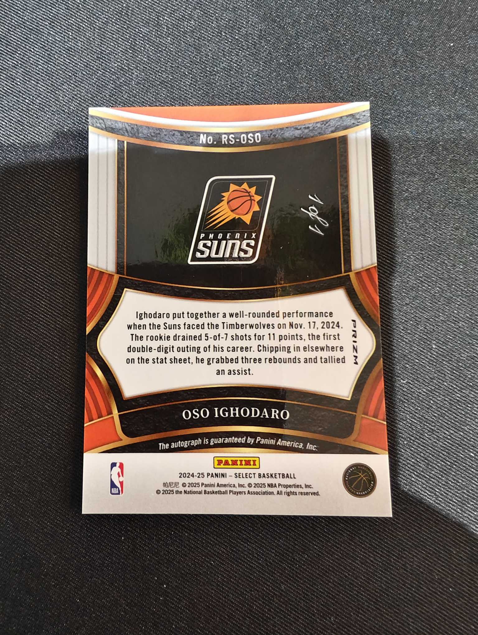 2024-25 Panini Select 新秀 RC 太阳 奥索 伊戈达罗 Oso Ighodaro 1/1编 黑蛇皮折 折射 签字 未来可期 卡品如图