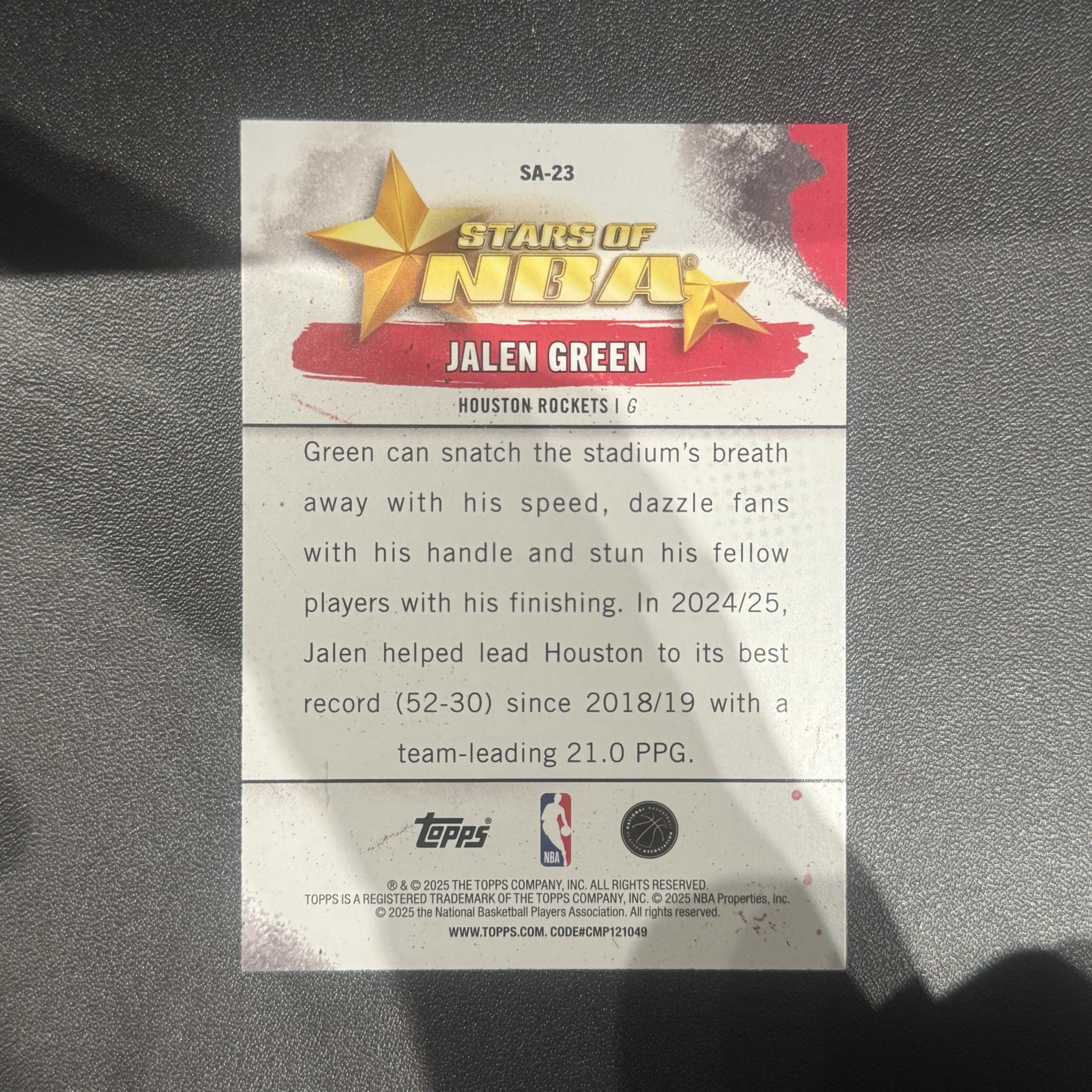 2025-26 Topps flagship Jalen Green 【猴猴旺卡】25赛季 休斯顿火箭 杰伦格林 91/99编 星星折 卡品如图 接代拍【阿龙】