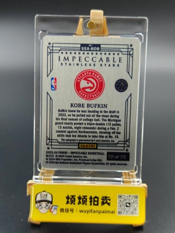 2.参拍:卡品墨迹如图所示(厚卡异形卡等都有正常白边白角,部分系列会有特殊瑕疵),请认真看图后再谨慎出价。不接受任何艺术家买卡,如拍到卡后有任何艺术家行为(包括但不限于在通行卡品里挑瑕疵索要赔偿或退卡等)一律拉黑投诉处理。所卖卡未经描述均为通行品,可能会有细微瑕疵;打包标小卡可能会有不同程度的瑕疵,不保障卡品;评级卡壳和原封砖的磨损不包含在卡品范围内;多张上拍卡品通行的同款卡片随机发货。竞拍前可以私聊要细节图,成交后再以有瑕疵、勿拍等理由退卡的一律拒绝,介意者请勿参拍!参拍即视为已读同意!