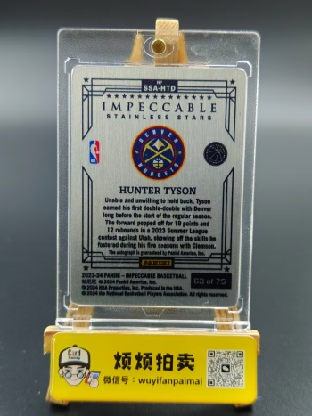2.参拍:卡品墨迹如图所示(厚卡异形卡等都有正常白边白角,部分系列会有特殊瑕疵),请认真看图后再谨慎出价。不接受任何艺术家买卡,如拍到卡后有任何艺术家行为(包括但不限于在通行卡品里挑瑕疵索要赔偿或退卡等)一律拉黑投诉处理。所卖卡未经描述均为通行品,可能会有细微瑕疵;打包标小卡可能会有不同程度的瑕疵,不保障卡品;评级卡壳和原封砖的磨损不包含在卡品范围内;多张上拍卡品通行的同款卡片随机发货。竞拍前可以私聊要细节图,成交后再以有瑕疵、勿拍等理由退卡的一律拒绝,介意者请勿参拍!参拍即视为已读同意!