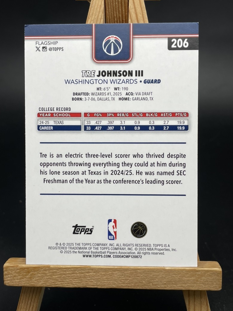 2025 Topps Flagship Tre Johnson III RC 【小哈拍卖-陆28】特雷约翰逊三世 新秀 250编 紫平行 base 投资收藏