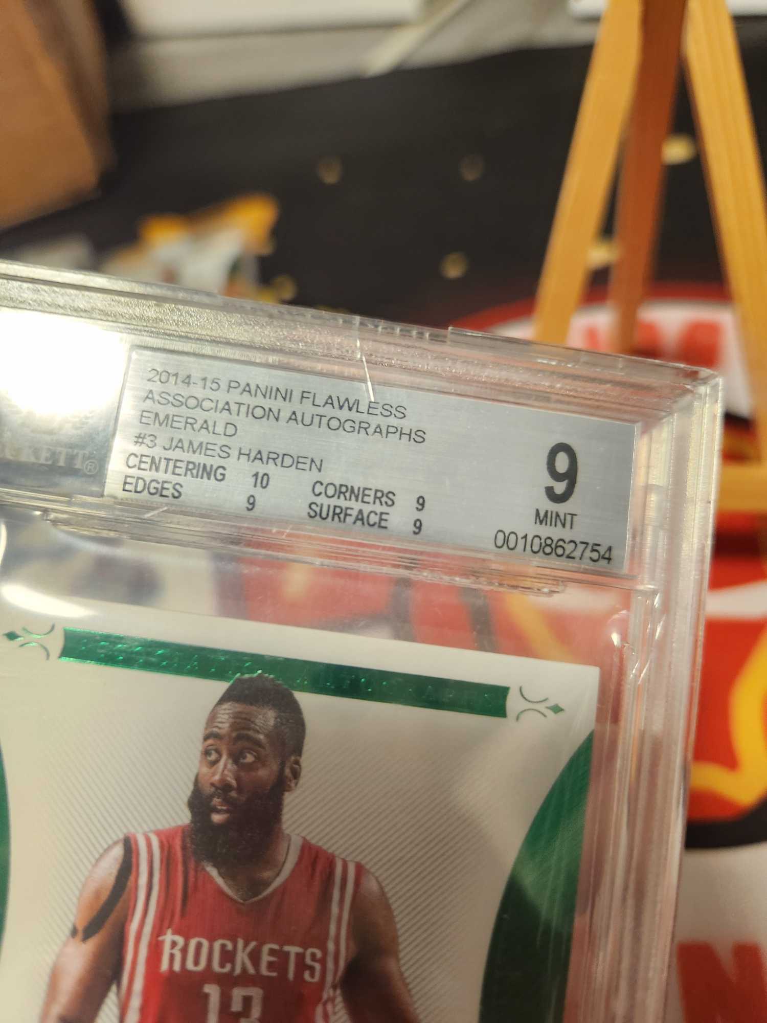 2014-15 Panini Flawless James Harden 手提 火箭 詹姆斯 哈登 低编 原封砖 签字 卡签 绿平行 4/5 bgs9 砖小裂纹