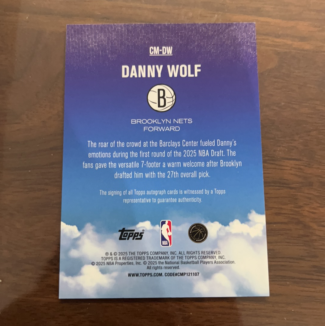 2025-26 Topps Flagship Danny Wolf RC 元年 新秀 丹尼 沃尔夫 签字 现代印记签 篮网 卡品如图
