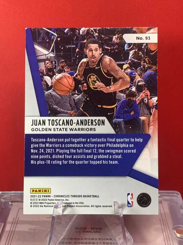 (老末代拍)D04 2021-22 Panini Threads Juan-Toscano-Anderson RC 胡安 托斯卡诺 安德森 新秀 勇士 小背心系列 base 顺丰寄付 免费代拍