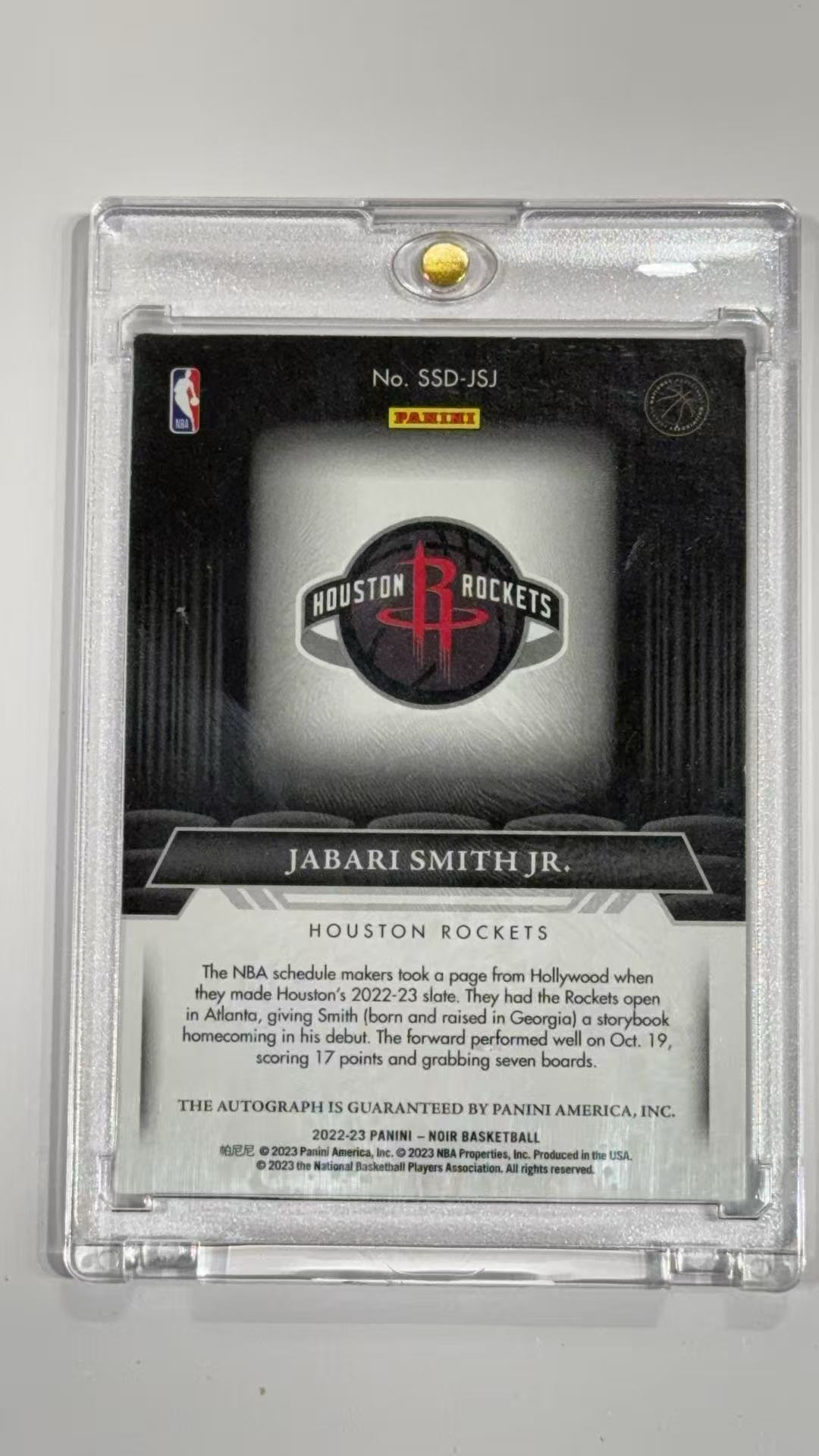 2022-23 Panini Noir Jabari Smith Jr. RC 帕尼尼 诺尔 贾巴里 斯密斯 新秀 卡签 签字 荧幕签 /10
