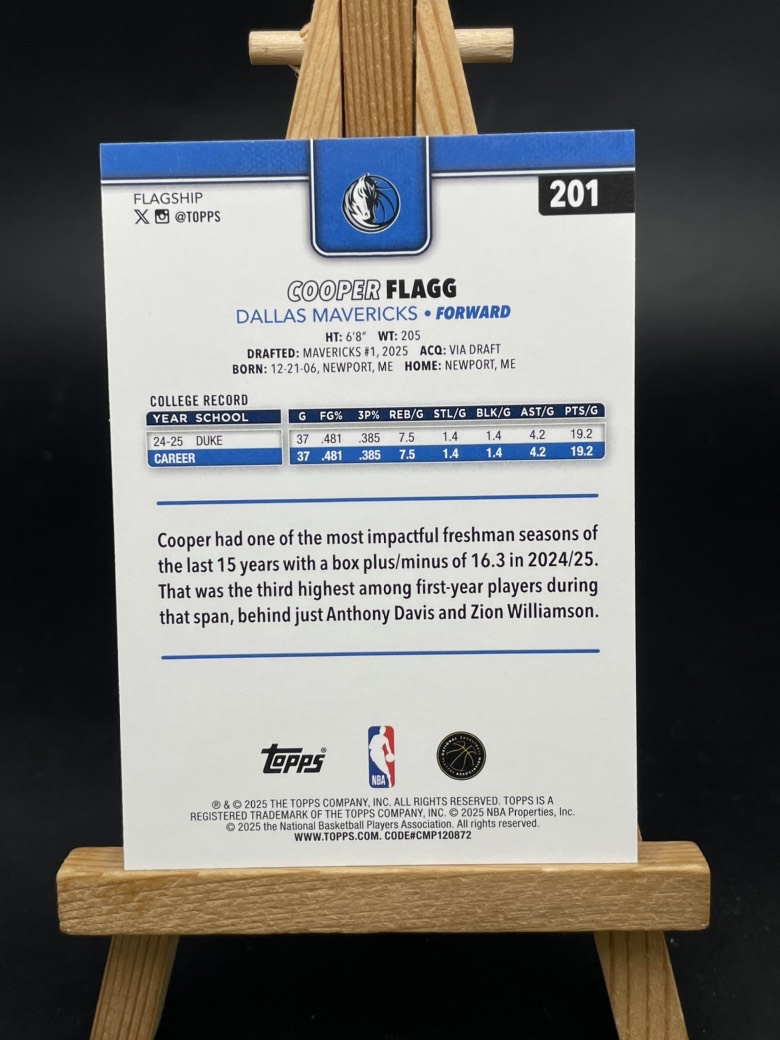 2025 Topps Flagship Cooper Flagg RC 【小哈拍卖-枫29】库珀弗拉格 新秀 第一版正base 大热状元 投资收藏 8