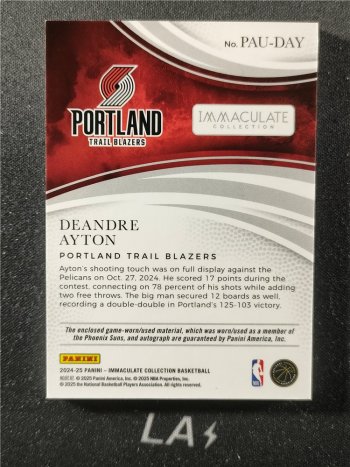 LA直通车属于LA拍卖专注于服务卡店的子品牌,因卡淘系统不支持跨号合并,所以分开发货计算邮费,卡品如图,请仔细看图,如果无图片特殊展示瑕疵均为通行品相,一般prizm optic 等系列薄卡的小划痕,国宝IMM等系列厚卡的小白边小白角,都属于通行品相。艺术家 品控勿扰。中标后请等我们合并订单再点确认付款。付款时卡淘留言说明累计或邮寄,避免纠纷只发卡淘默认地址(我们会按照留言的先后顺序处理发货,请不要反复留言以免耽误给您回复)为了方便结算和卡片的累计查找,我们只合并当天的订单。邮费-顺丰(默认陆运):北京13元,非偏远外地18元,新疆西藏等偏远只发到付!超重只发到付!1000元以上的订单,建议买家自行保价,或用顺丰到付,所有快递未经保价,运输途中的损坏和丢失请于快递联系解决。(本店不支持任何普快发货,破损及丢失率太高)介意勿拍!中标可累计,累计时间2个月,每标累计金额不能超过1000元,累计商品不支持任何售后,累计超时未联系发货的,发生损坏、丢失问题 由买家自行承担损失。累计的卡片请先付清卡款,然后站内信留言提货吗,请于截标后3天转好,截标后5天未确认收到付款,一律卡淘投诉处理。寄售代卖咨询:laauction。(此微信用于代卖业务,卡淘订单问题卡淘站内信留言,客服上班逐一回复~)