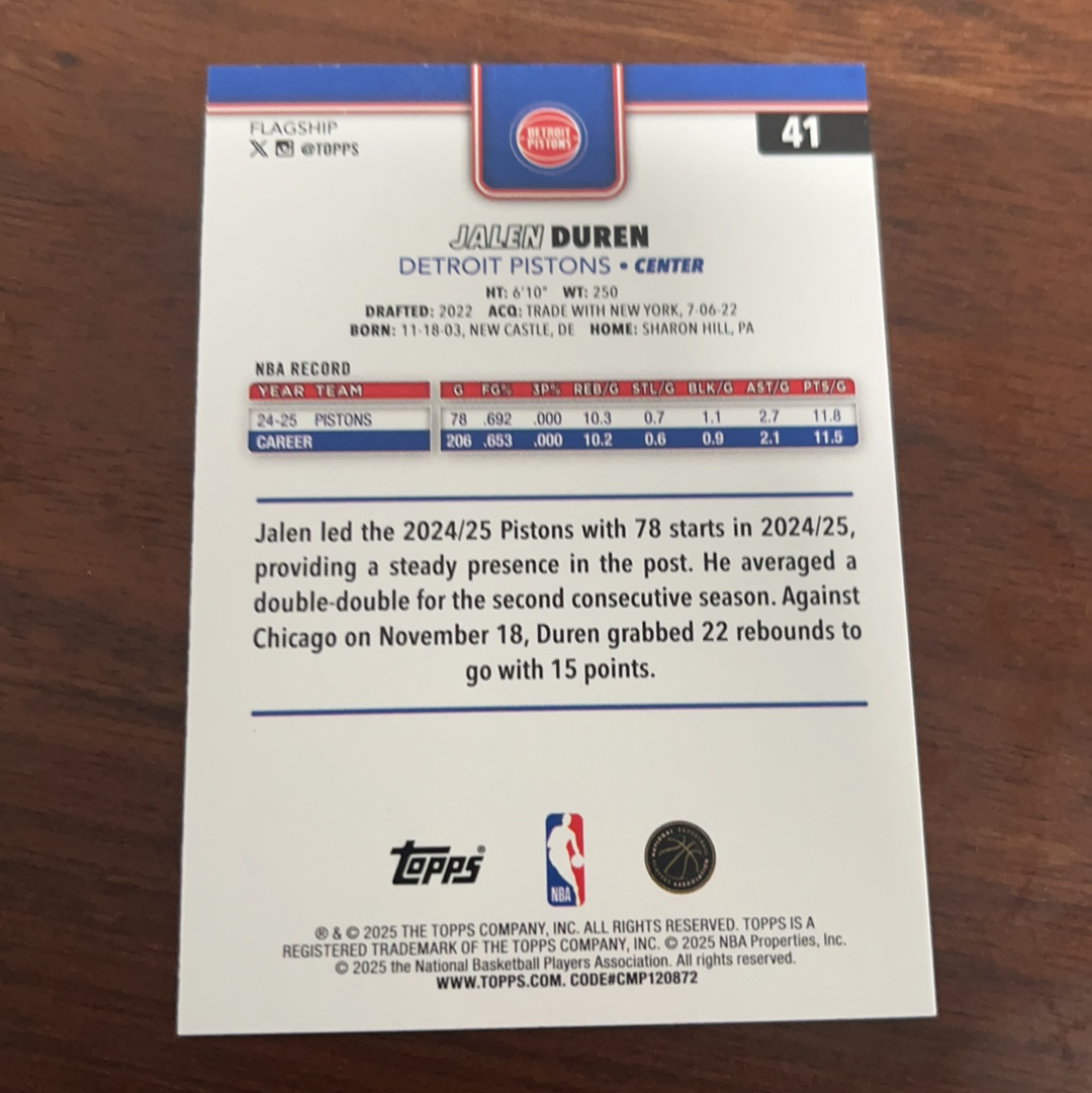 2025-26 Topps Basketball Jalen Duren 2025-26 Topps NBA 2025编 杰伦 杜伦 金平行 收藏必备 卡品如图