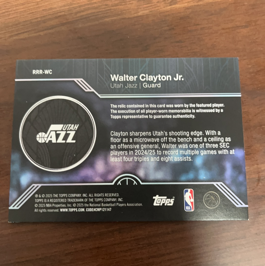 2025 Topps 篮球 Walter Clayton Jr. 小沃尔特·克莱顿 亲穿物料切割 RC新秀 Roundball Remnants特卡 银折 收藏必备 瑕疵如图