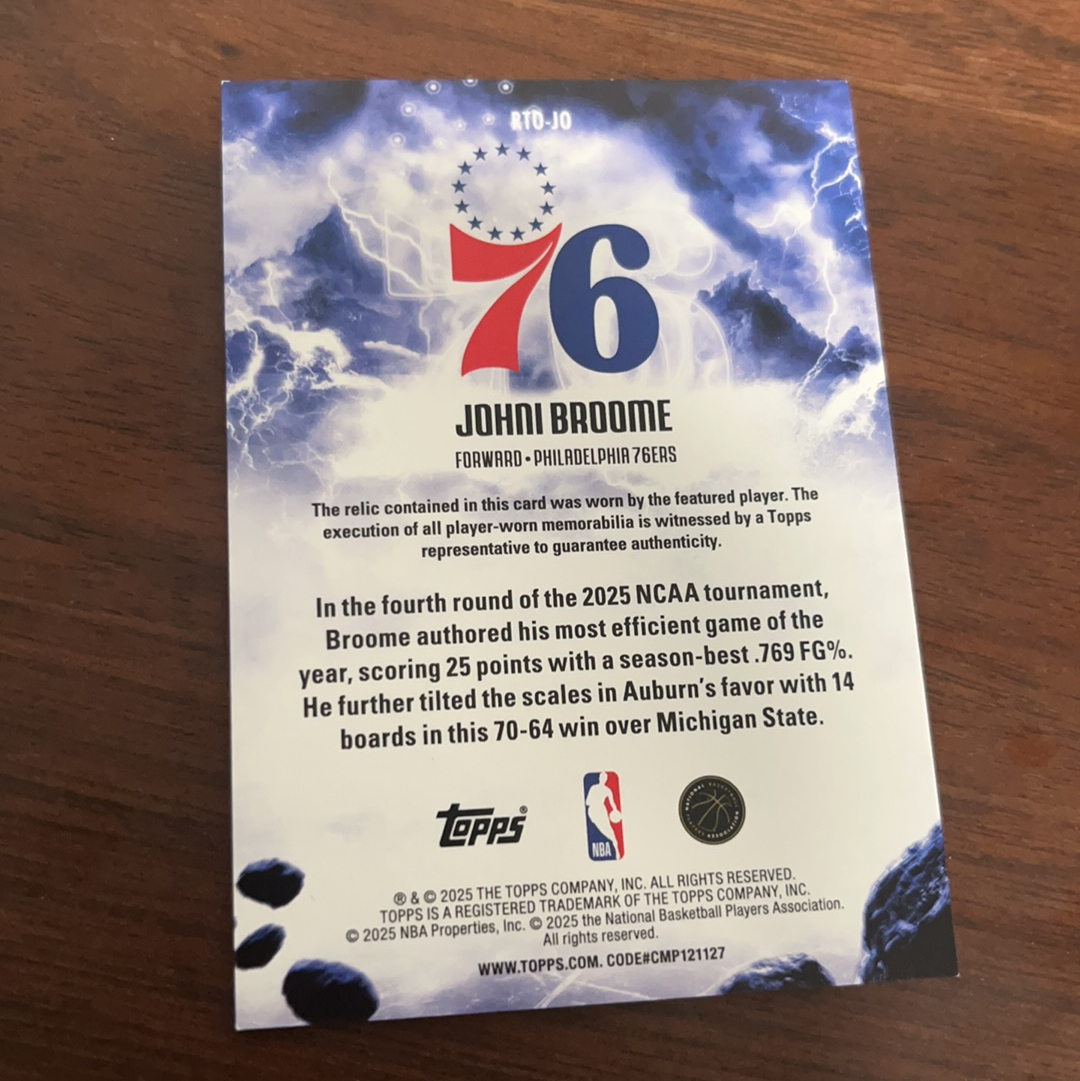 2025 Topps flagship Johni Broome RC 约翰尼 布鲁米 新秀 Rise to the occasion 球衣物料切割 小窗 GU亲穿 99编 绿平行