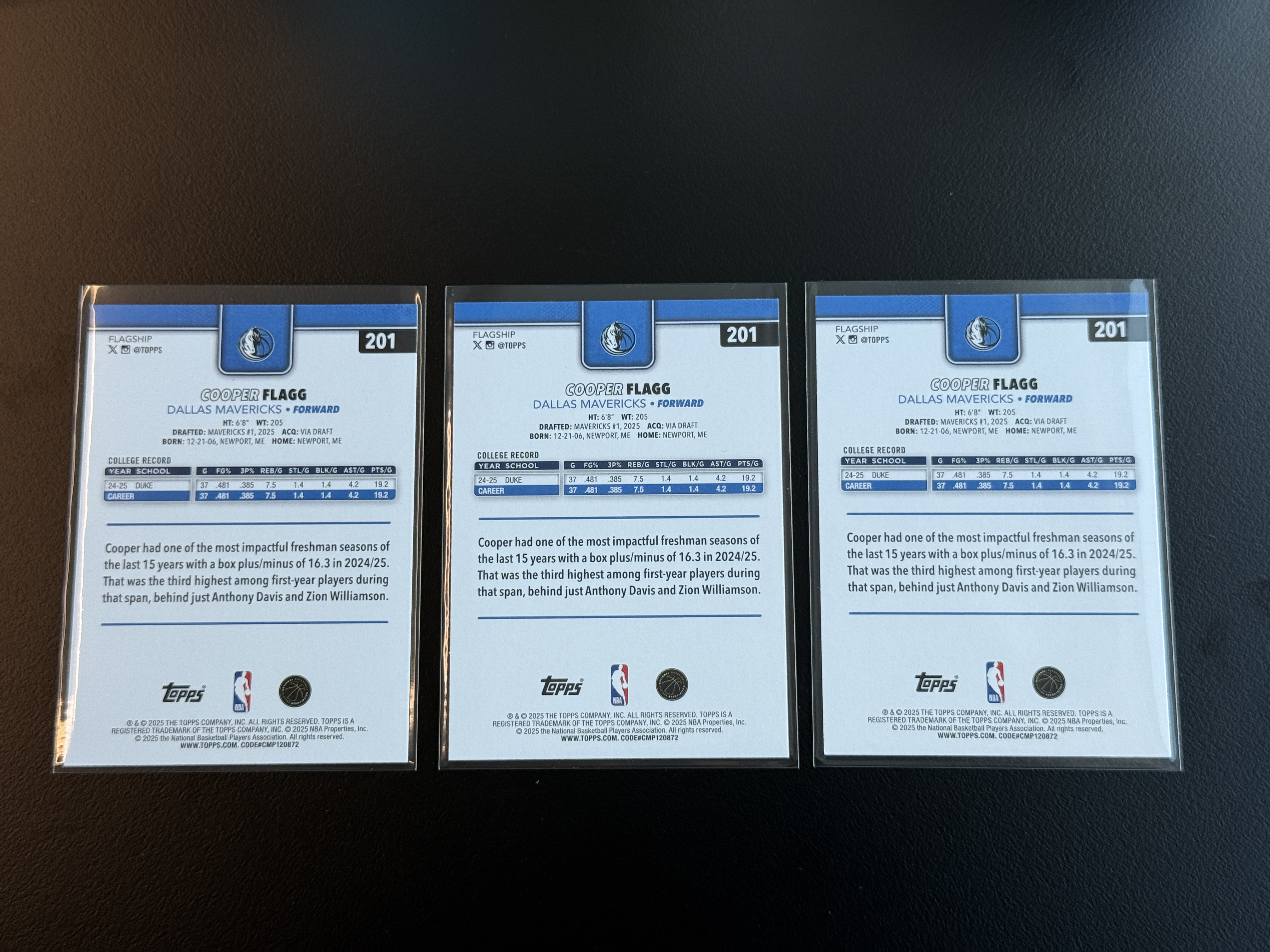 2025 Topps flagship Cooper Flagg RC 独行侠 状元 美国之子 库珀 弗拉格 新秀base【3张一起】
