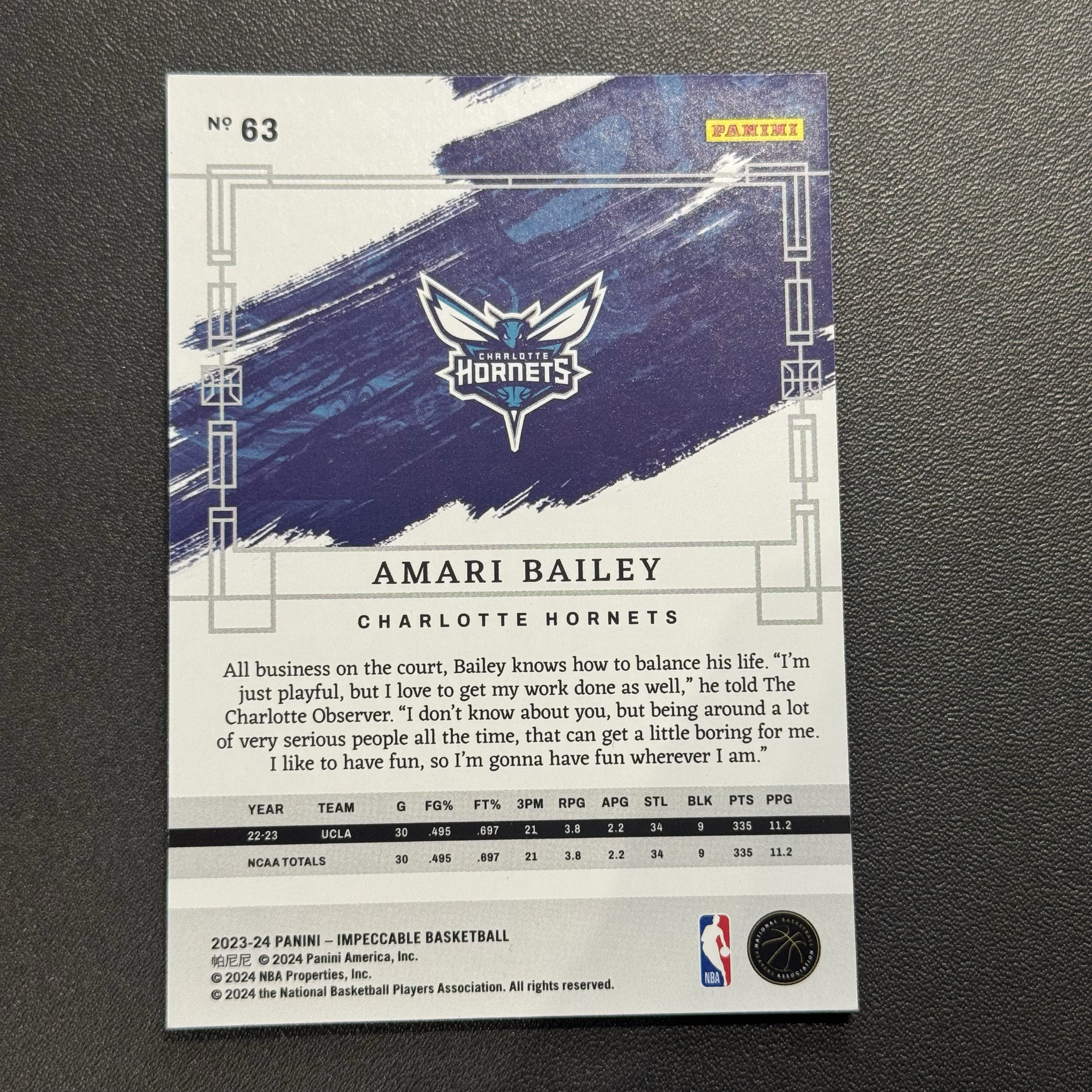 2023-24 Panini Impeccable Amari Bailey RC 【猴猴旺卡】黄蜂 阿马里 贝利 小真金 卡品如图 接代拍【朱哥】