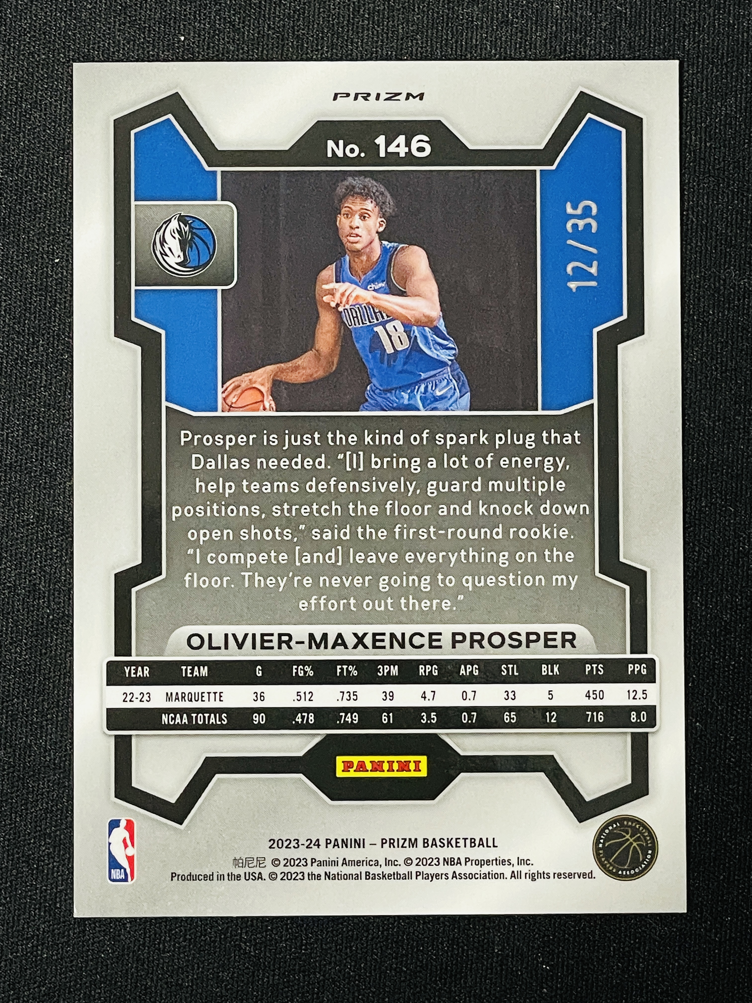2023-24 Panini Prizm Olivier Maxence Prosper RC 【飞飞代卖】独行侠 新秀 普洛斯珀 蓝shimmer折 35编 折射 专收凑套必备【yy】