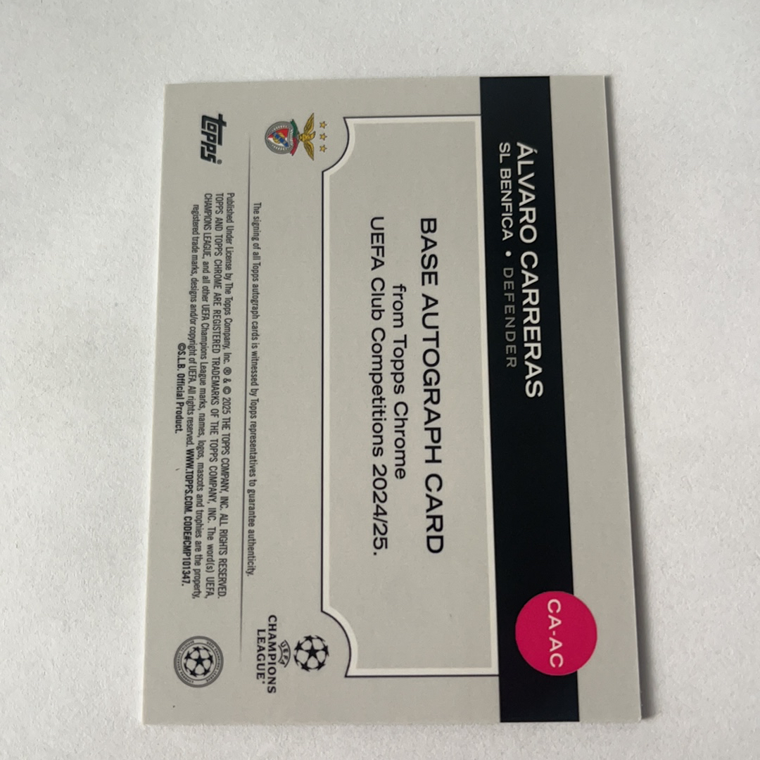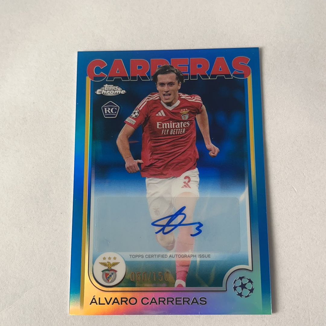 2025 Topps Chrome carreras 阿尔瓦罗 卡雷拉斯 新秀 RC 签字 150编 蓝折 本菲卡 曼联 皇马 皇家马德里 西班牙 欧冠 微瑕 Y哥