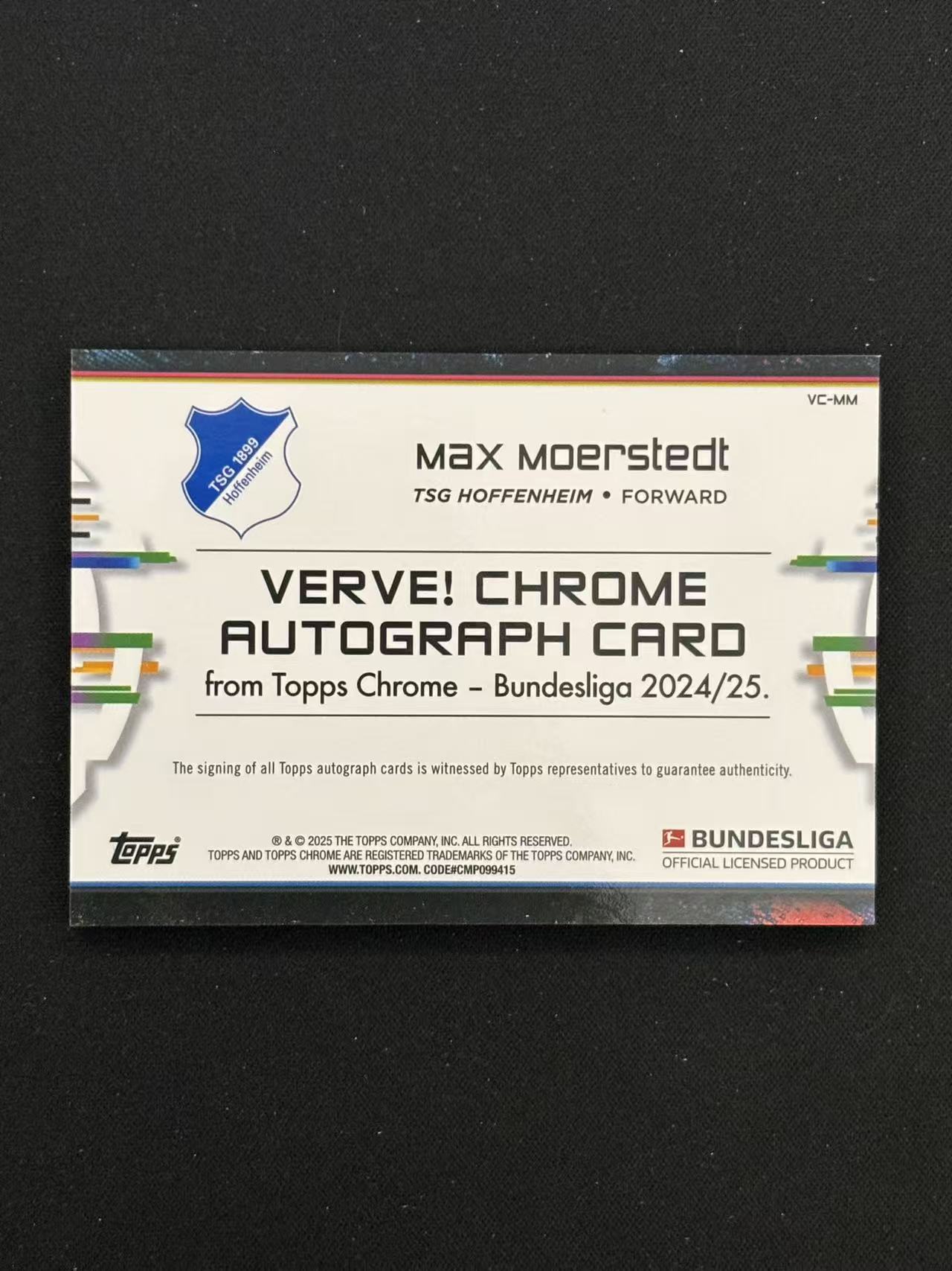 2025 Topps Chrome Max Moerstedt RC 德甲 TC 霍芬海姆 新秀 马克斯 莫尔施泰特 Verve 激情签 签字 第一张 - 何先生