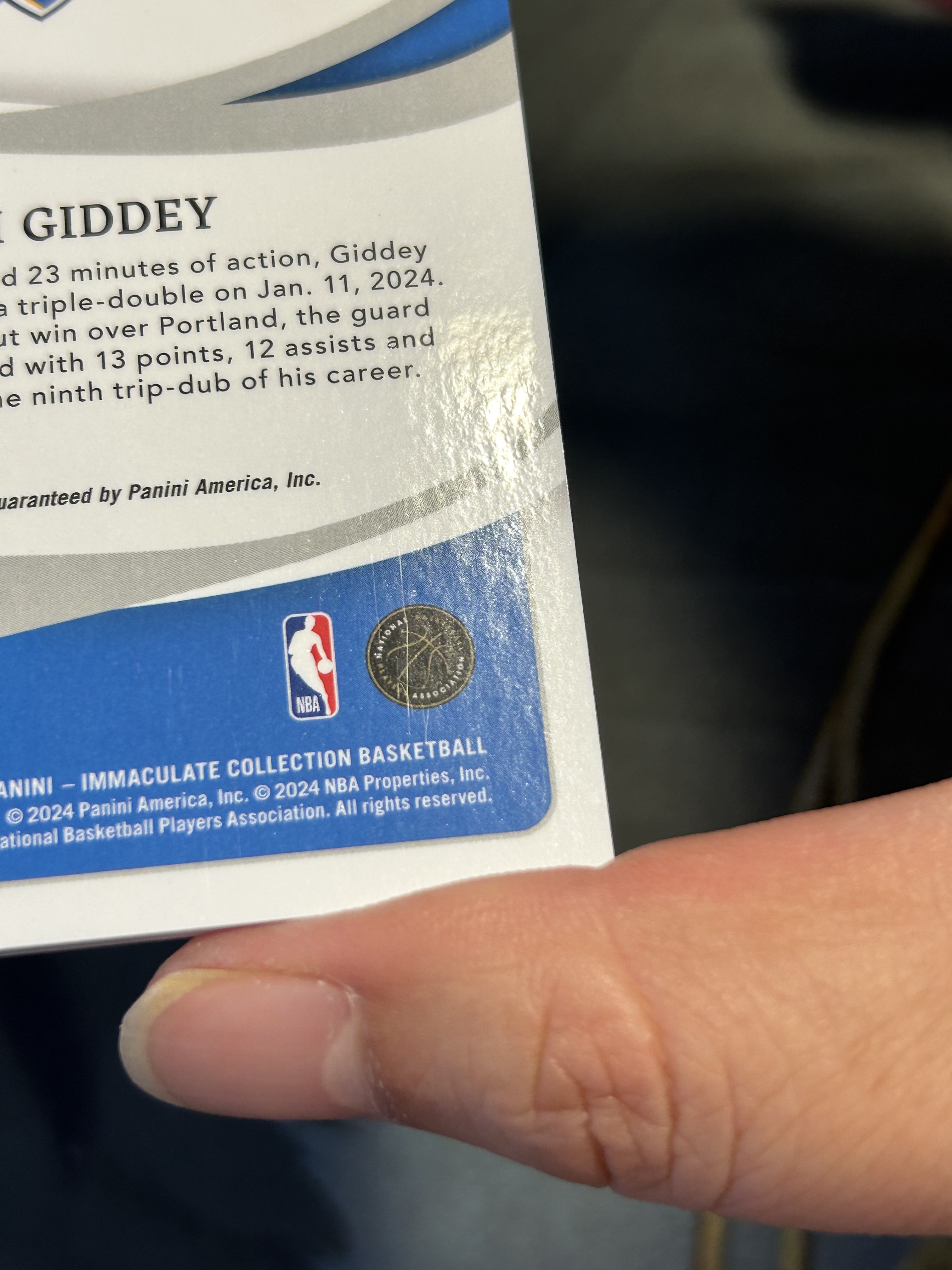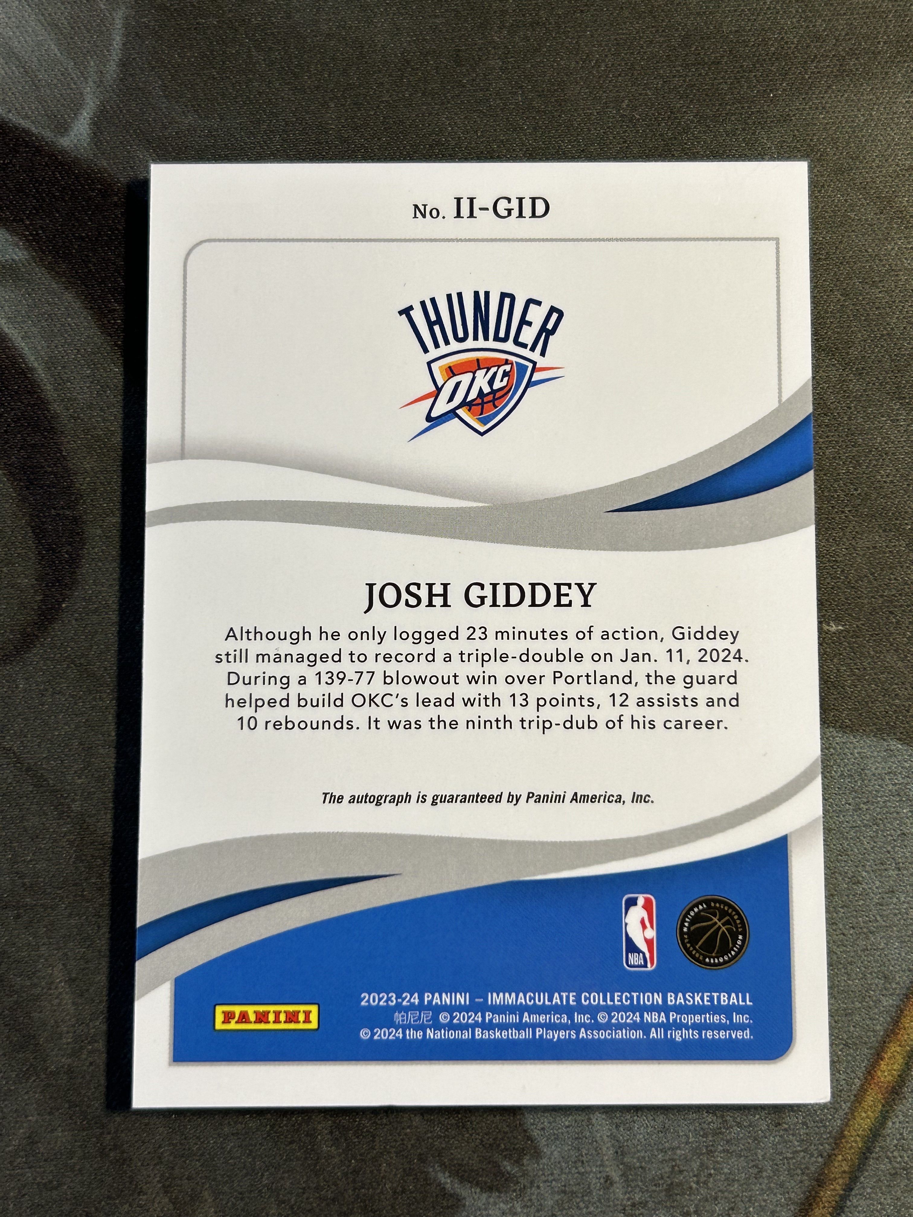 2023-24 IMMACULATE INK AUTO 签名签字卡签 限量/99编 JOSH GIDDEY 约什·吉迪 雷霆 (品见大图,小瑕)《苏州卡通》Z【NXX】
