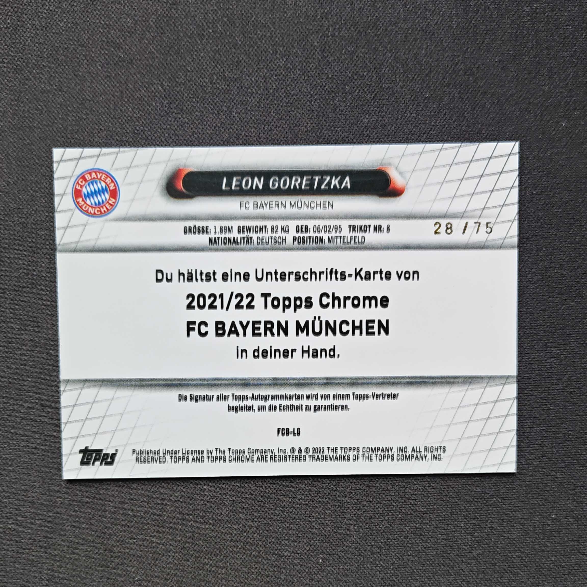 2021-22 Topps Chrome Leon Goretzka 拜仁 队盒 格雷茨卡 28/75编 银折 签字 卡签 卡品如图 德国