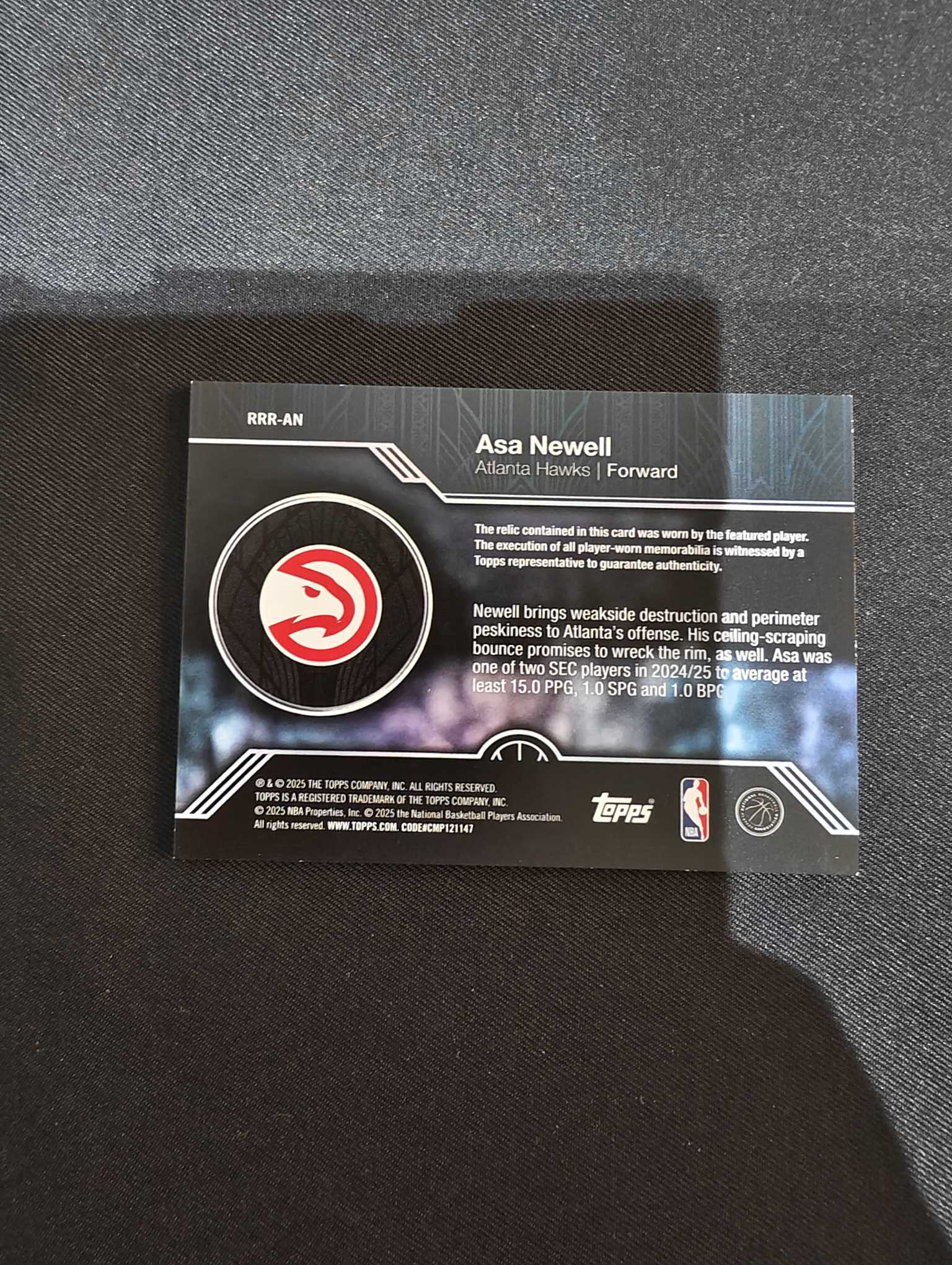 2025-26 Topps hobby 篮球 asa Newell RC 阿萨 纽厄尔 纽维尔 老鹰新秀 23号秀 99编  patch 亲穿 卡品如图