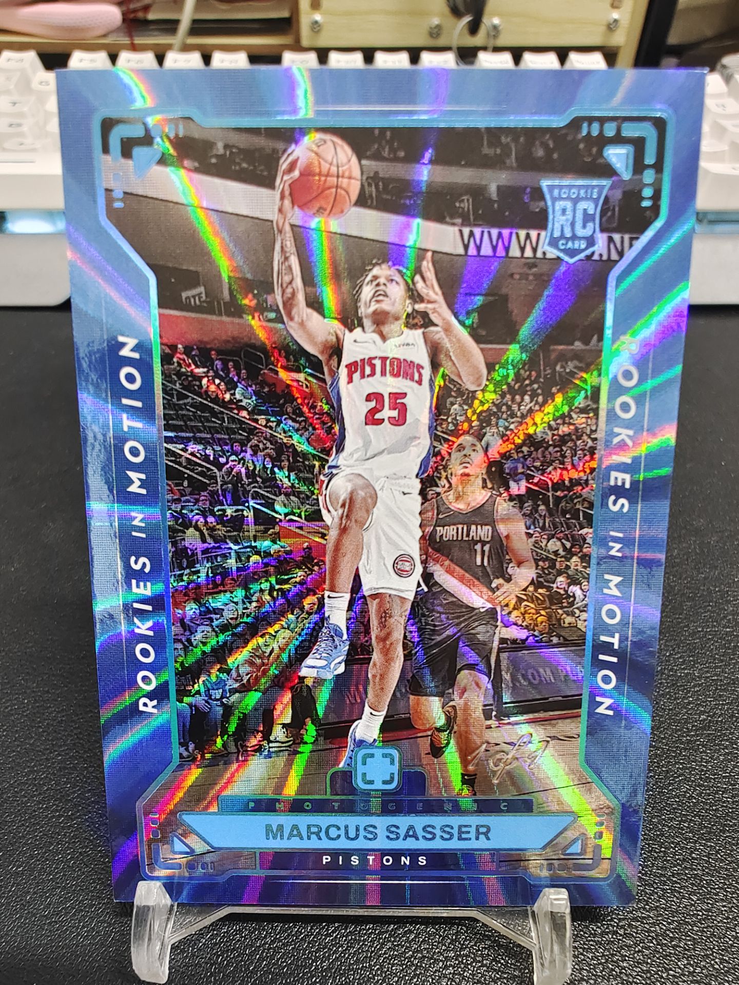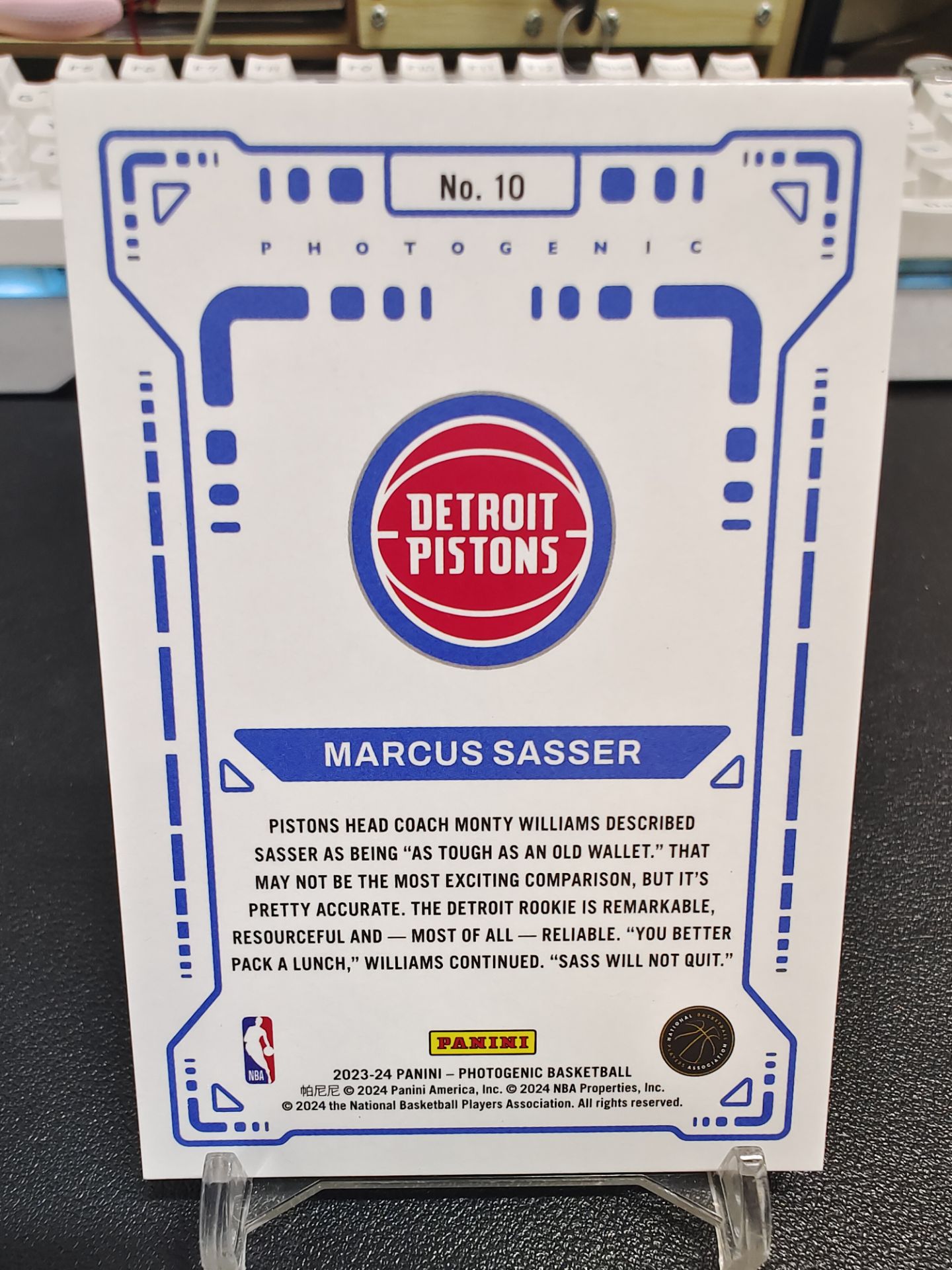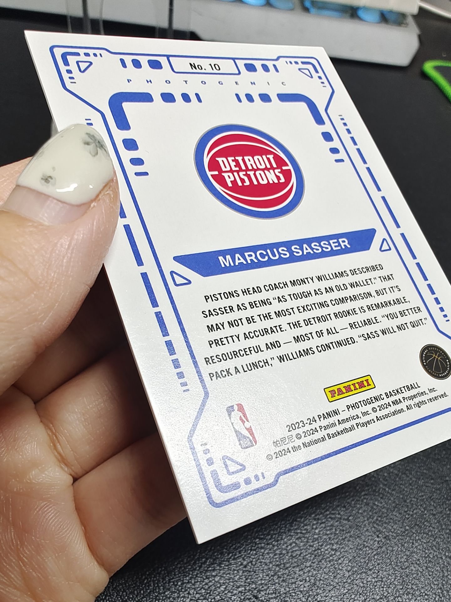 【浩行拍卖 截标预付82%】2023-24 panini photogenic Marcus Sasser 上镜 活塞 马库斯 萨瑟 新秀RC 特卡 湖水蓝 佛光折 折射 1 of 1 1/1编 仅此一张 瑕疵看图「蔓钧」1101D07恁飛