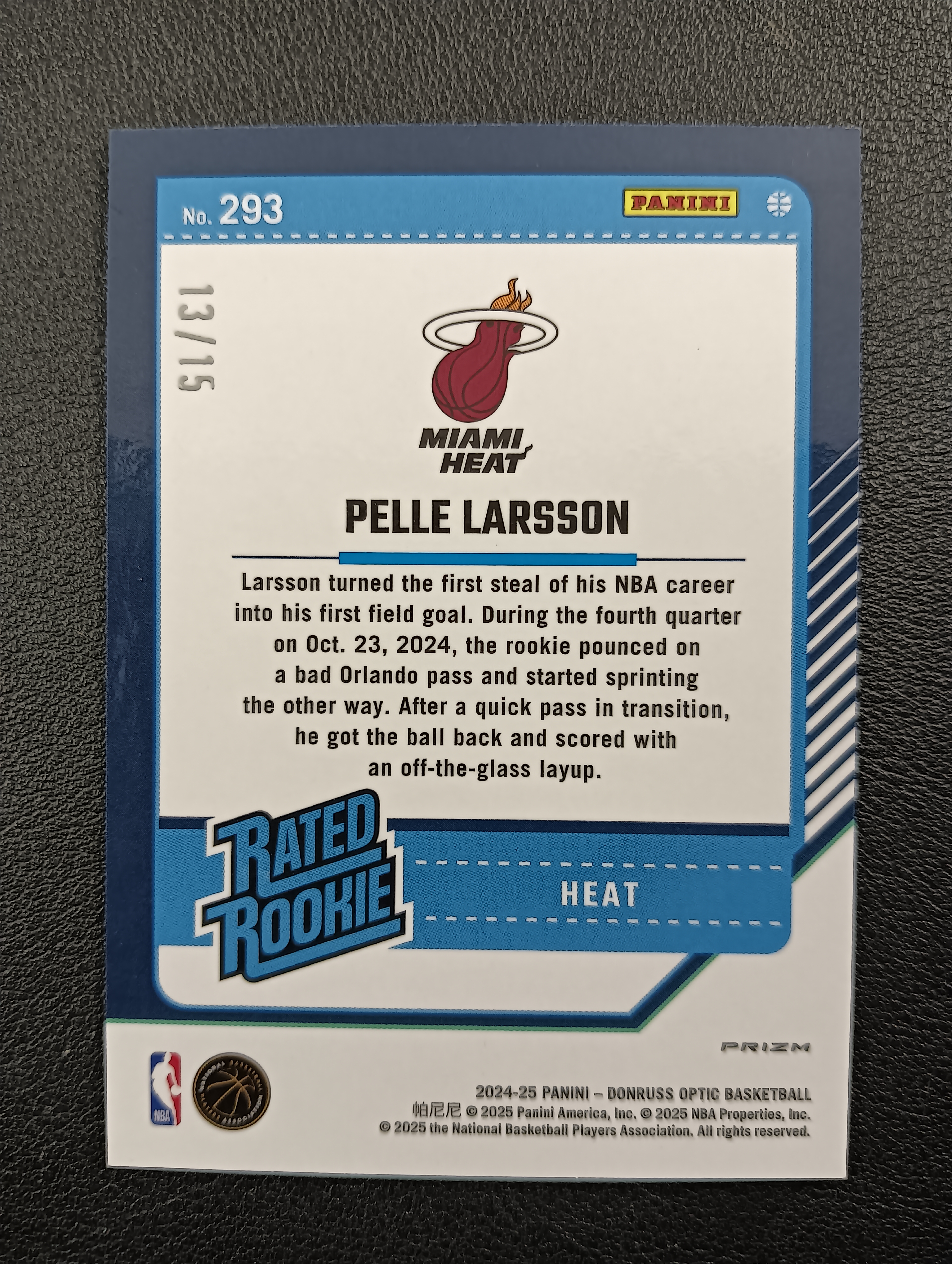 2024-25 PANINI 杜蕾斯OPTIC PELLE LARSSON RC 【卡仓-起飞077】热火 佩莱拉尔森 白圈圈折射 新秀BASE /15编 低编 NO.293