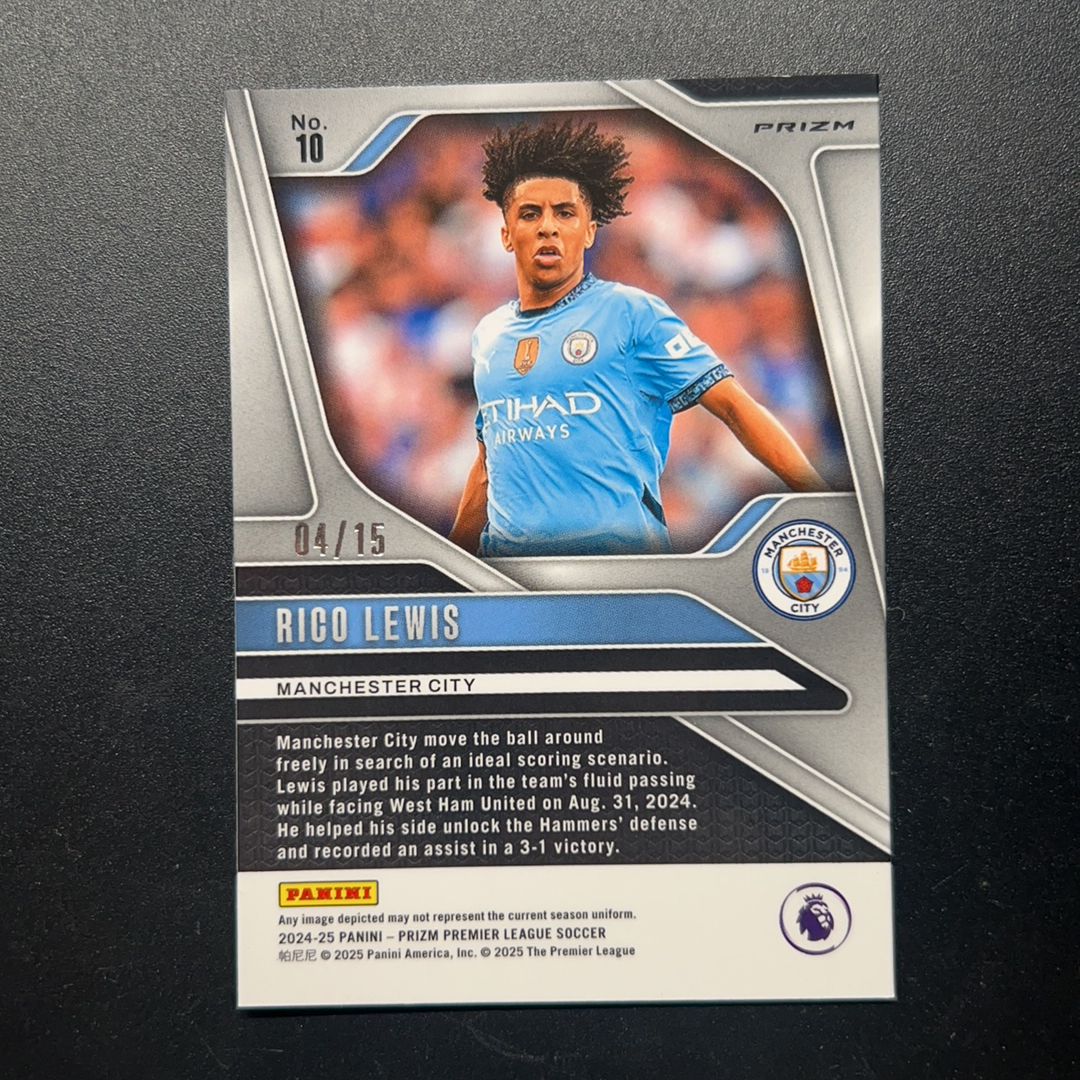 2024-25 Panini Prizm Rico Lewis 英超 PZ 里科 刘易斯 04/15编 斑马折 圈圈折 动物折 曼城 卡品如图 介意勿拍