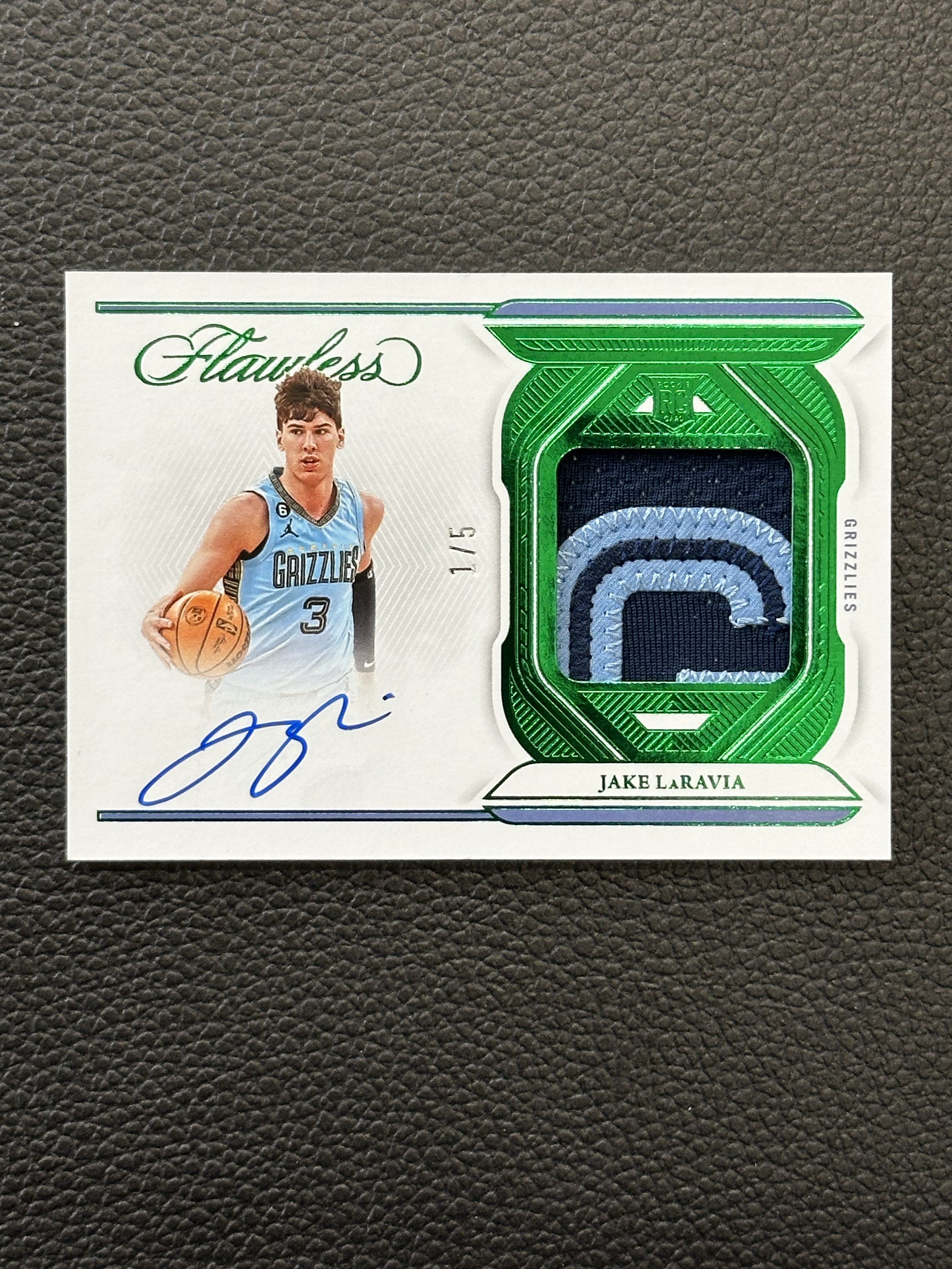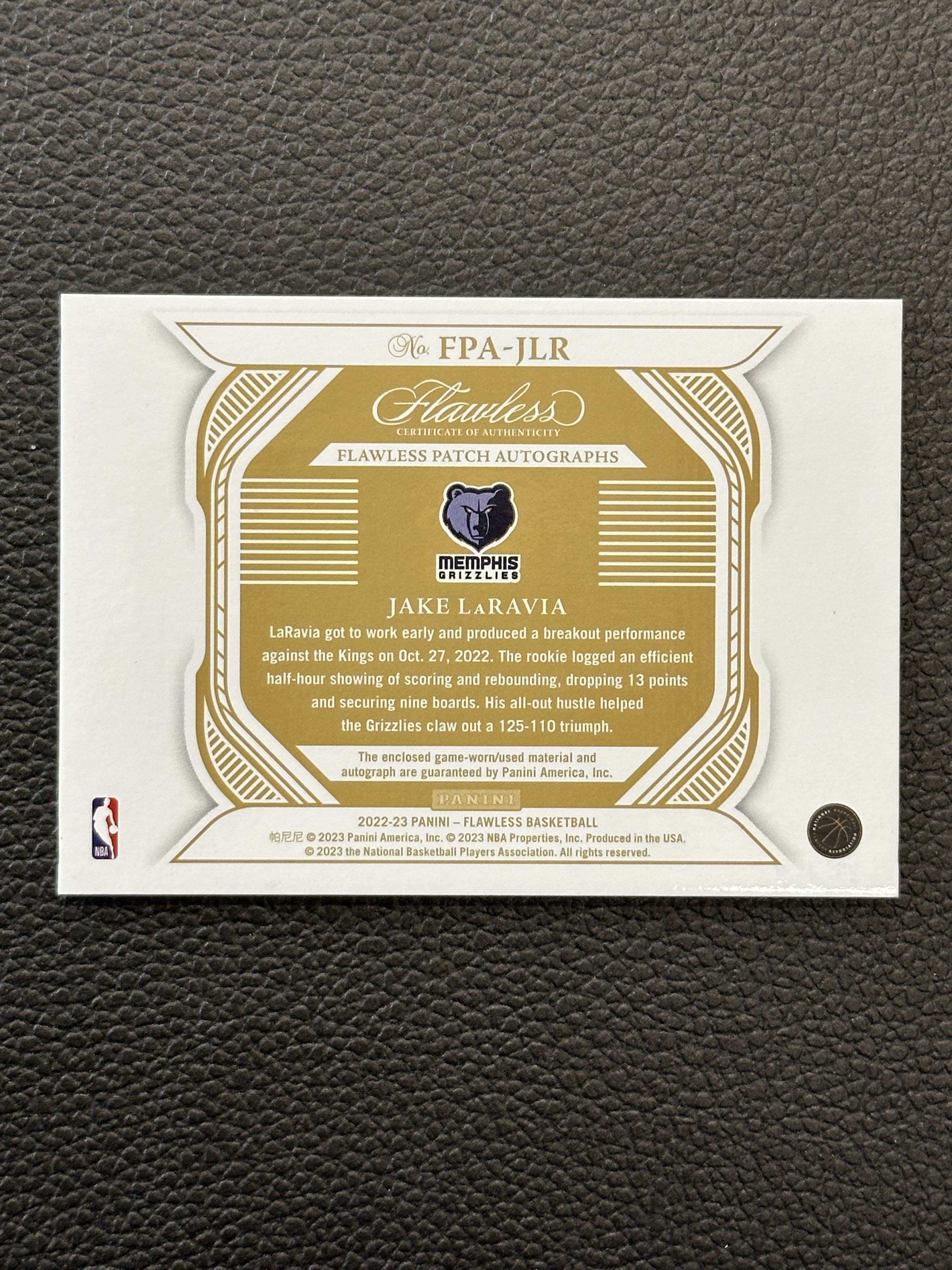 2022-23 Panini Flawless Jake LaRavia RC 手提 灰熊 新秀 杰克 拉拉维亚 1/5编 首编 GU球衣物料 暴力切割 RPA FPA 签字 卡签 绿平行 翡翠绿
