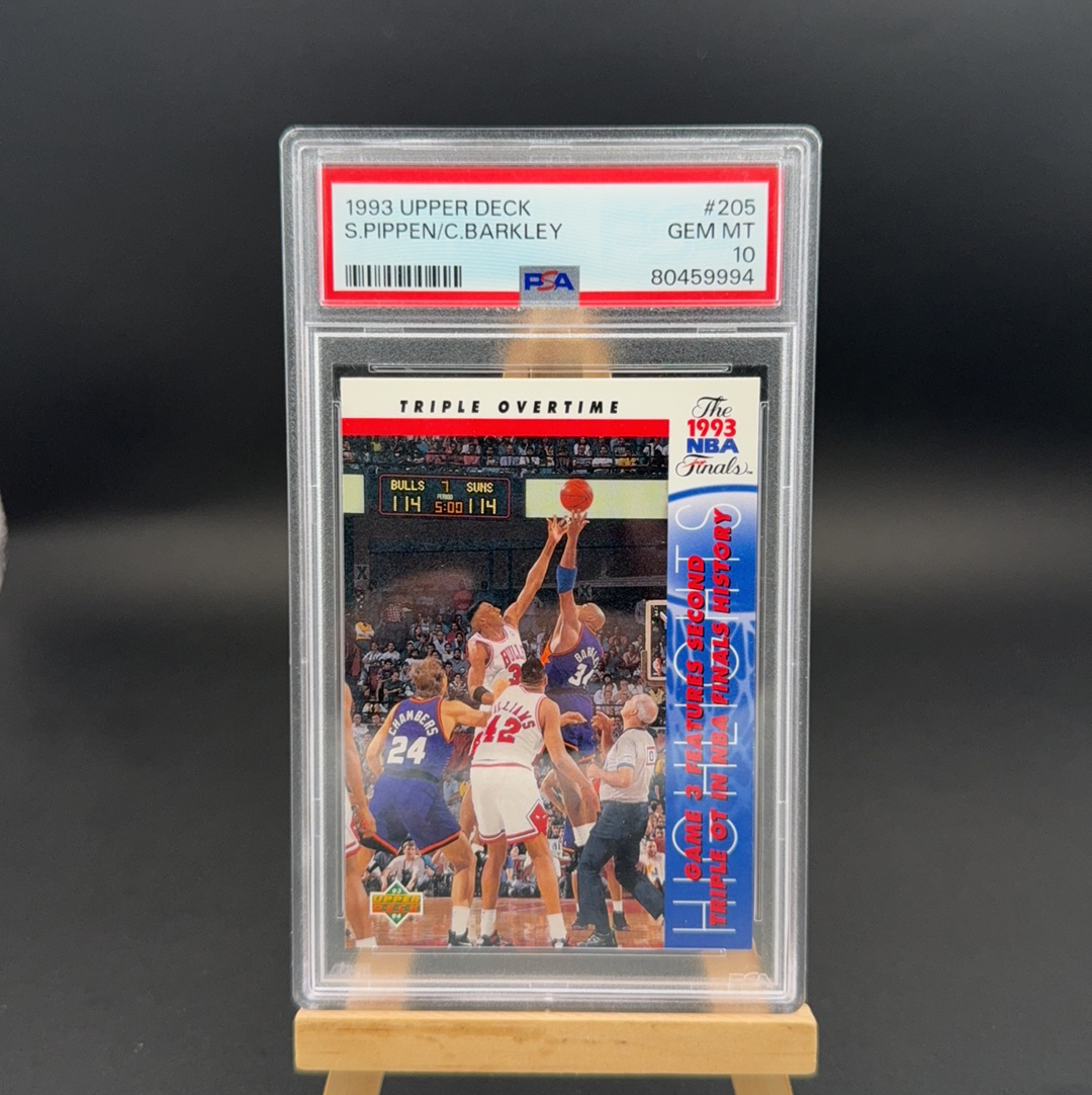 1993 Upper Deck UD S.PIPPEN/C.BARKLEY NBA总决赛 公牛VS太阳 G3 比分114:114 三加时 斯科蒂皮蓬 查尔斯巴克利 跳球时刻 PSA10分 机一073