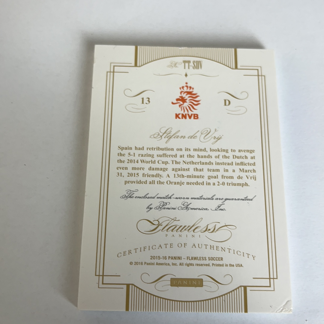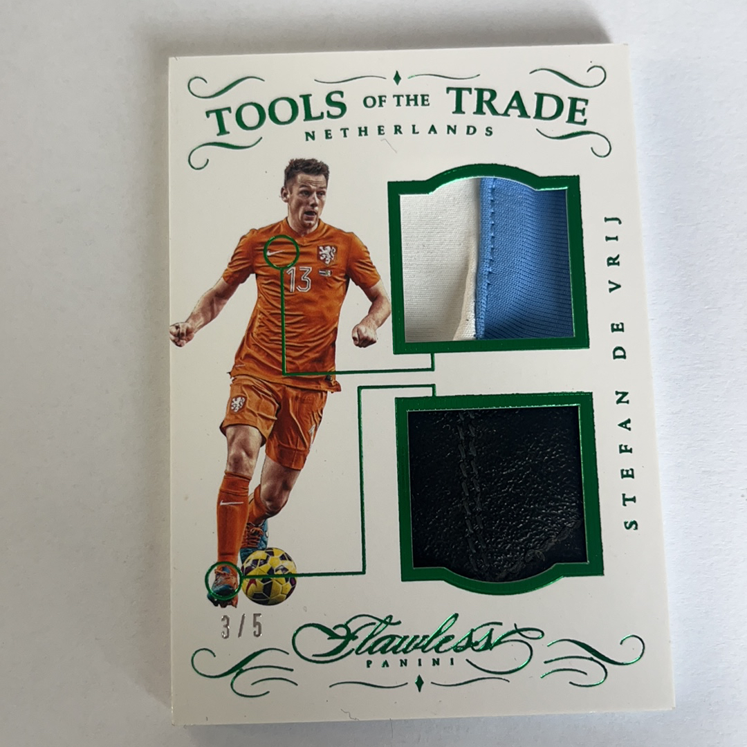 2015-16 Panini Flawless Stefan de Vrij 手提元年 荷兰 德弗里 3/5编 绿平行 双窗 patch 球衣物料 极具收藏价值 未来必涨 瑕疵如图 总进球