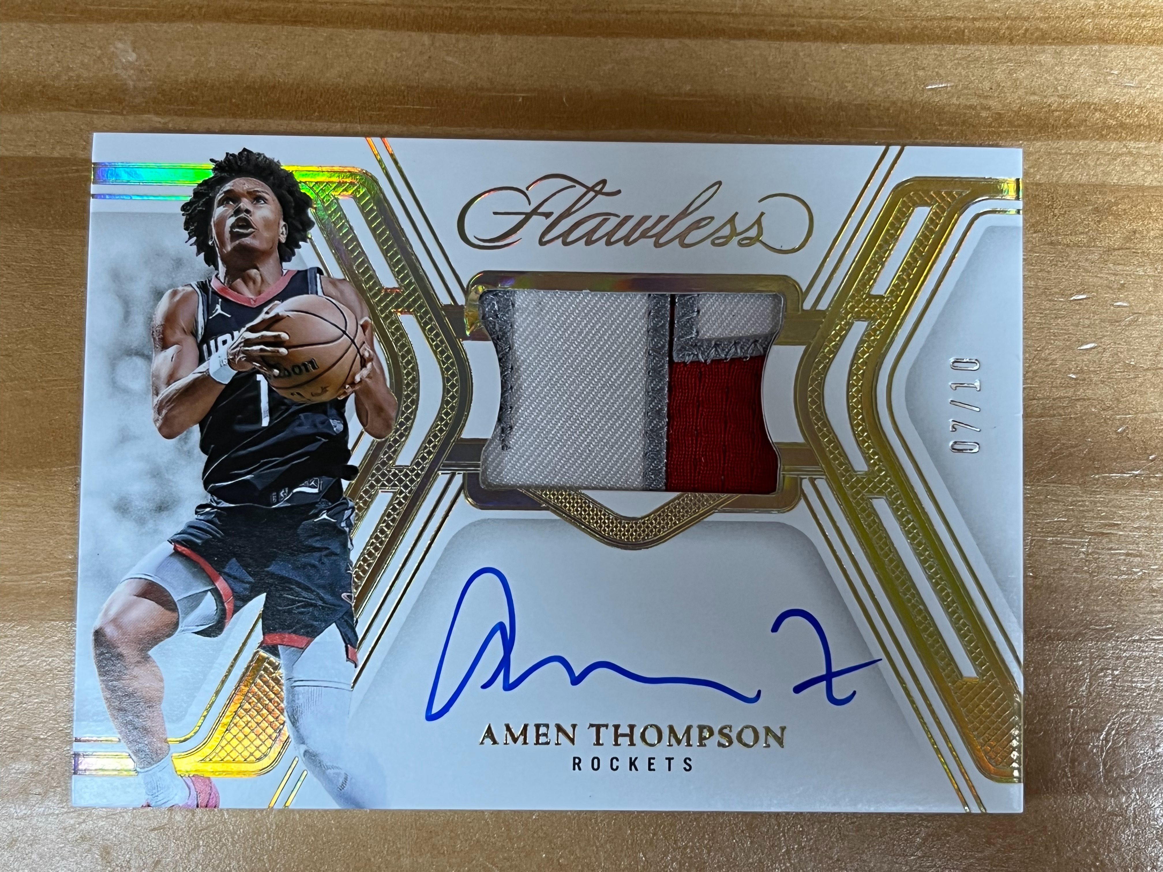 PANINI 2024-25 FLAWLESS  手提  火箭  Amen Thompson 阿门 汤普森 PATCH 签字卡 卡签 金平行  7/10  球衣镶嵌处有瑕疵    花布袋