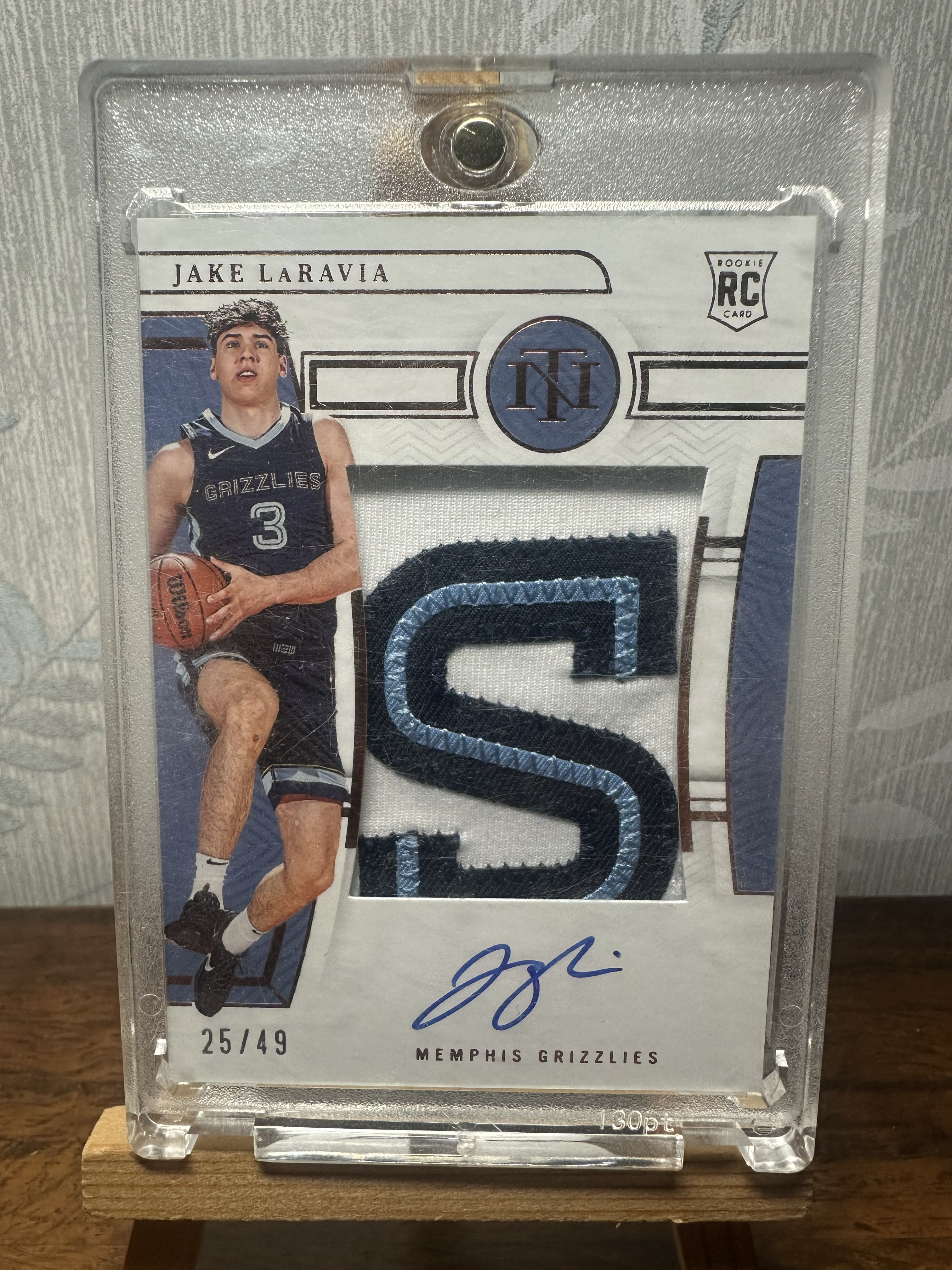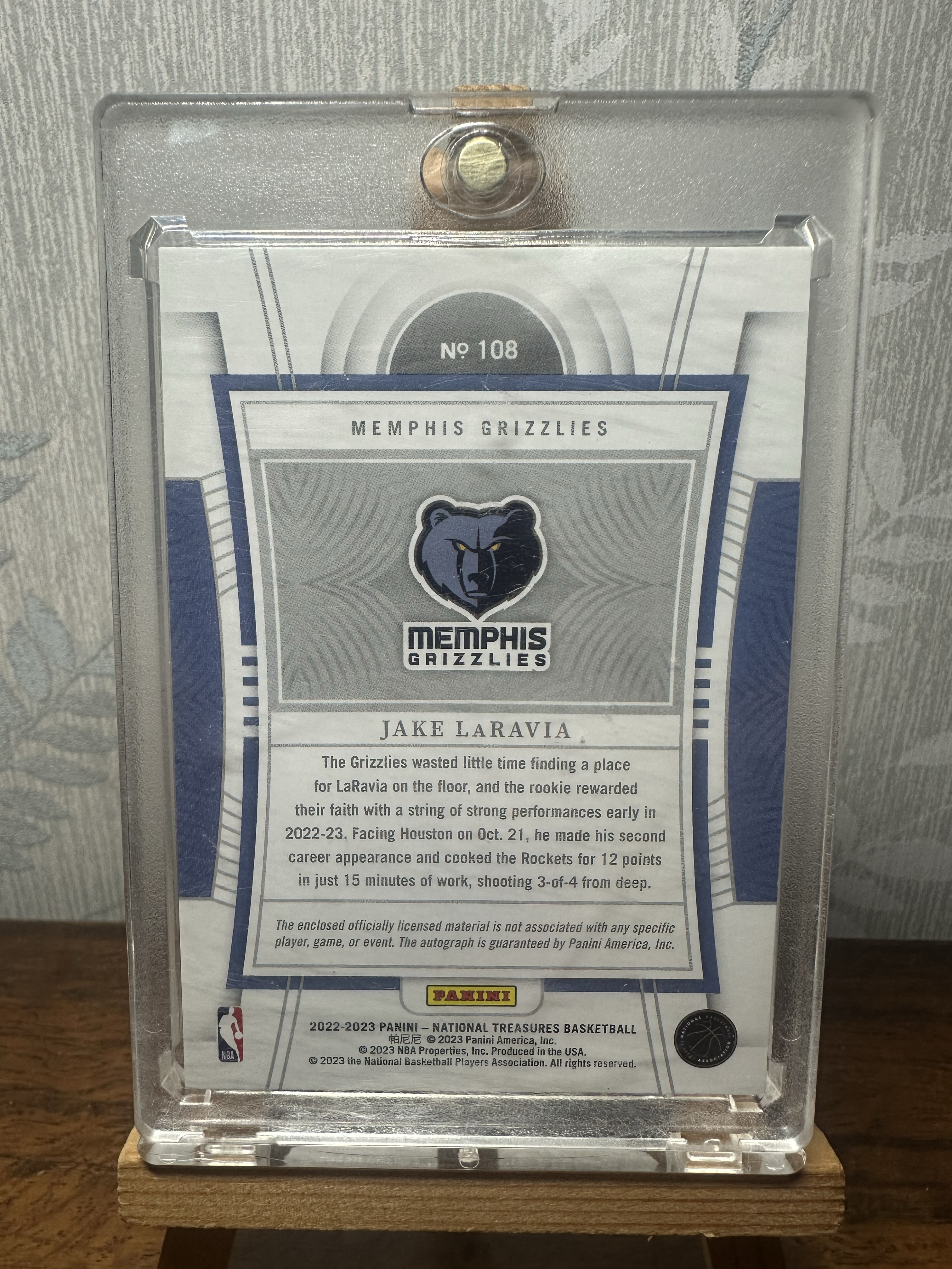 2022-23 Panini National Treasures Jake LaRavia RC 杰克拉拉维亚 新秀 国宝 49编 签字卡签 S字母暴力球衣切割 正rpa 湖人灰熊 东契奇里弗斯队友
