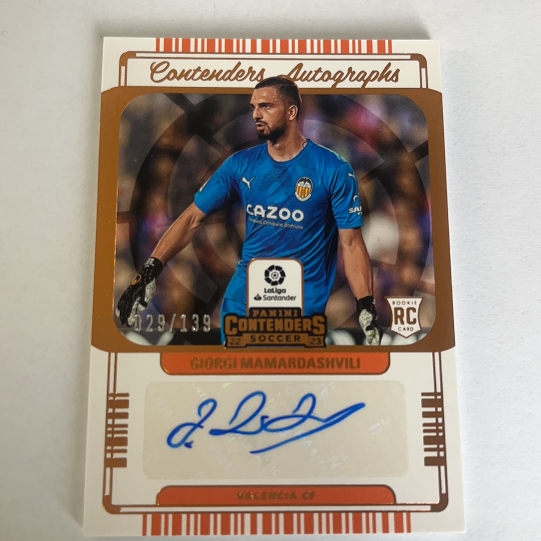 2022-23 Panini Chronicles Giorgi Mamardashvili 马马尔达什维利 马达什维利 RC 签字 139编 瓦伦西亚 利物浦 格鲁吉亚 编年史 球票 微瑕 总进球