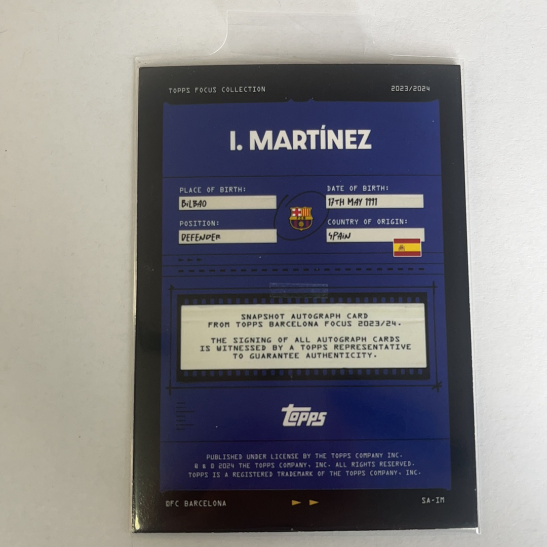 2023-24 Topps 聚焦 i.martinez Inigo Martinez巴萨 聚焦 巴塞罗那 伊尼戈 马丁内斯 签字 贴签 150编 黄折 折射 快照签 墨迹卡品如图 总进球