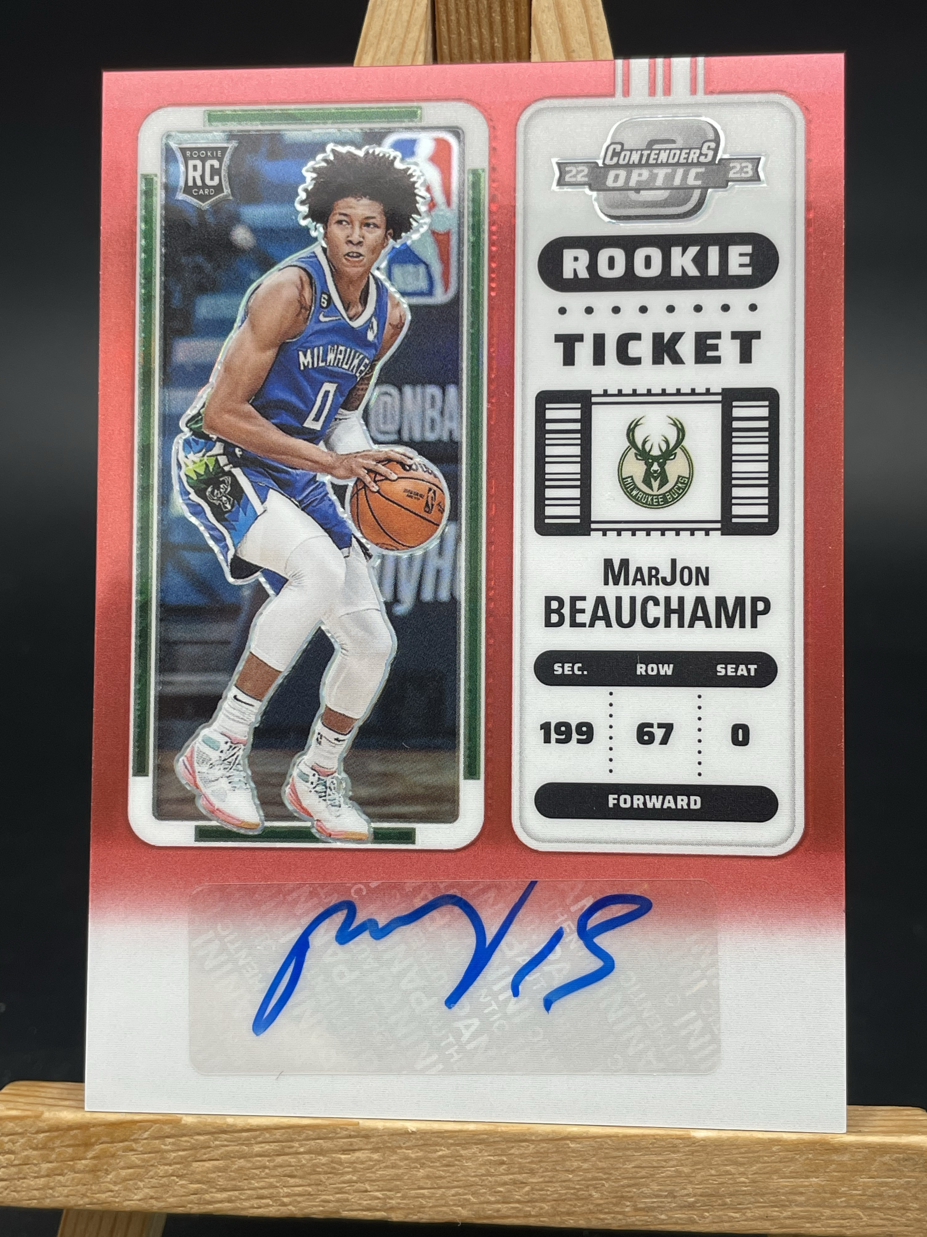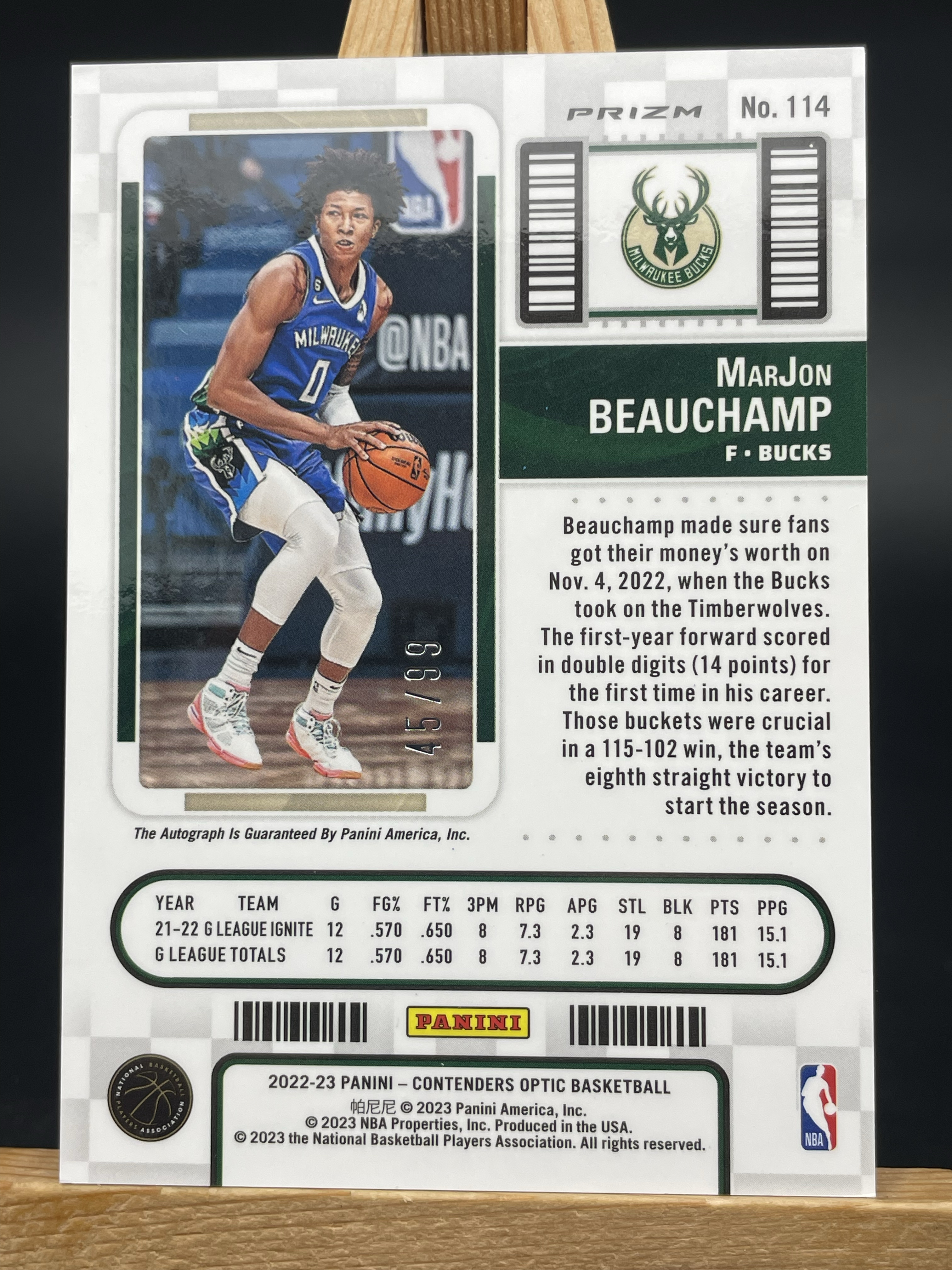 2022-23 Panini Contenders Optic MarJon Beauchamp RC 【小哈拍卖-Z05】球票Op系列 马扬比彻姆 新秀 45/99编 红折 签字 投资收藏
