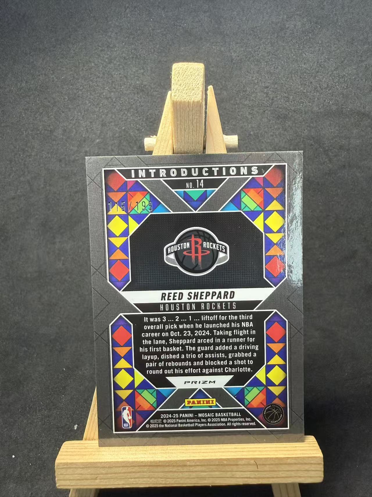 2024-25 Panini Mosaic Reed Sheppard 里德 谢泼德 火箭 新秀RC 马赛克 折射 蓝马赛克折 /199编 默认瑕疵 介意勿拍 添