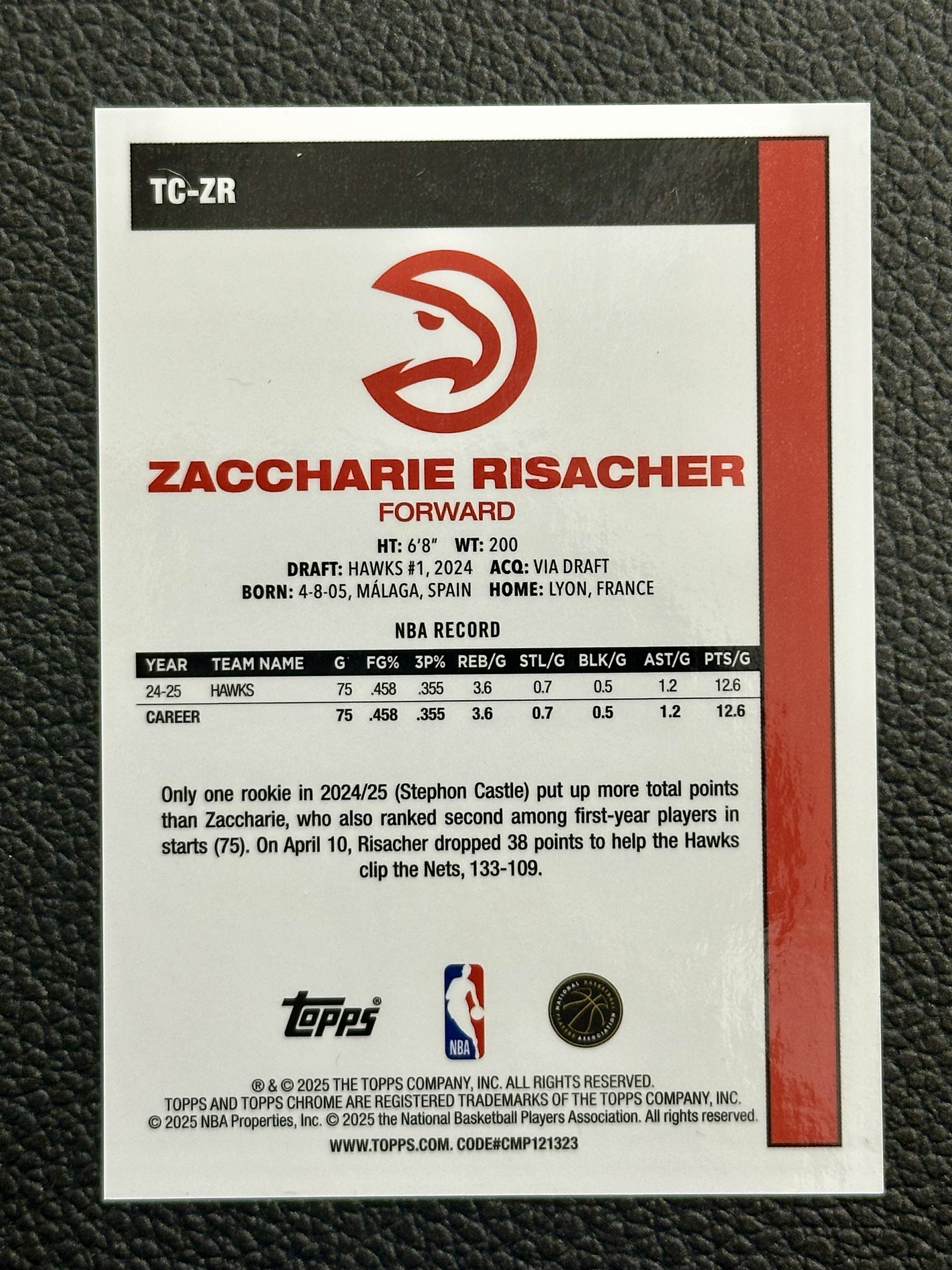 2025-26 Topps Flagship Zaccharie Risacher TC 老鹰 扎卡里 里萨谢 19/50编 金折 mojo折 chrome 45周年 特卡 状元 新赛季爆发 卡品如图