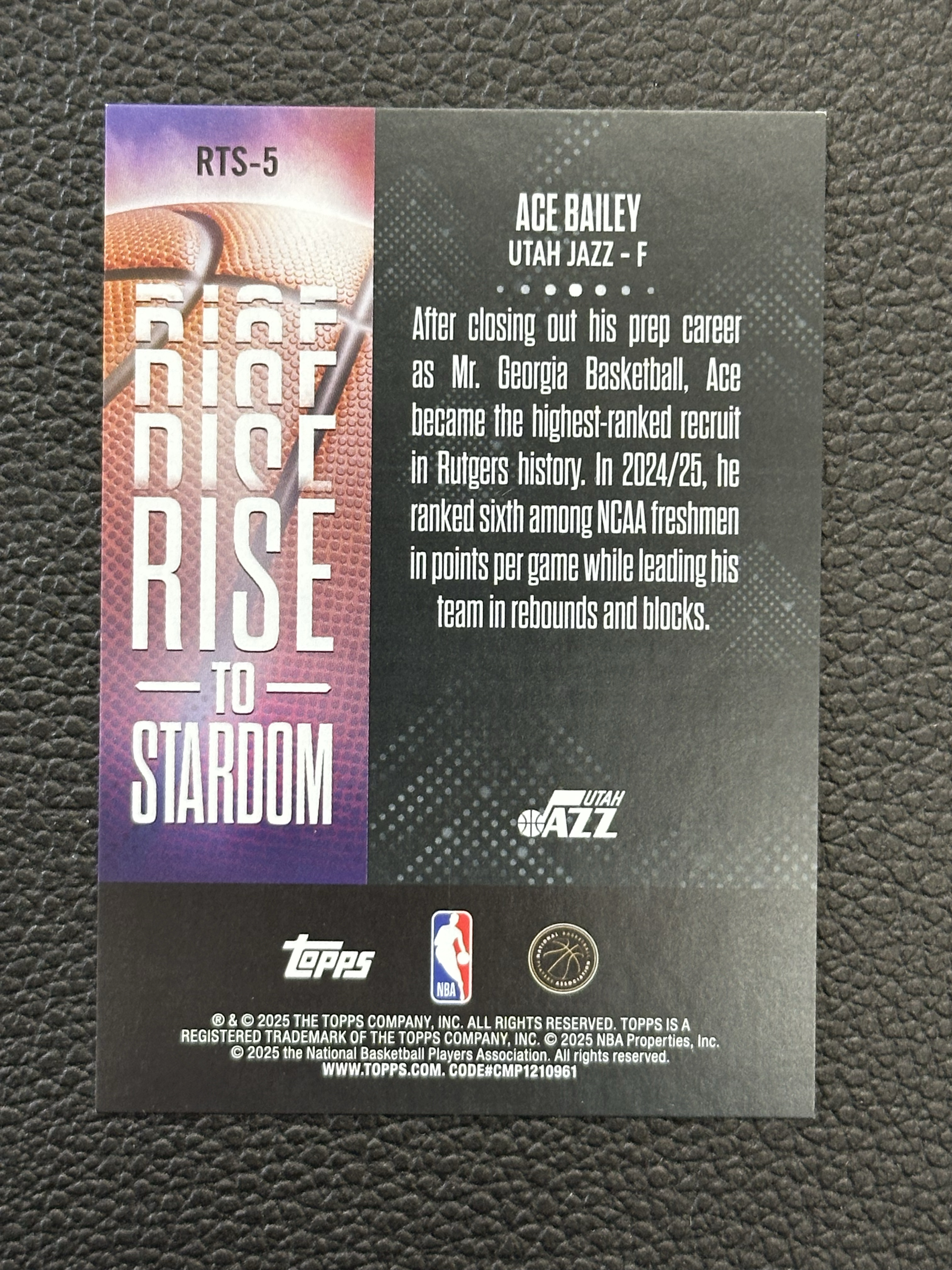2025 Topps NBA Flagship Ace Bailey RC 艾斯 贝利 爵士 新秀 Rise to Stardom 巨星之路 特卡 13/50编 金折 低编 折射 潜力新秀 卡品如图